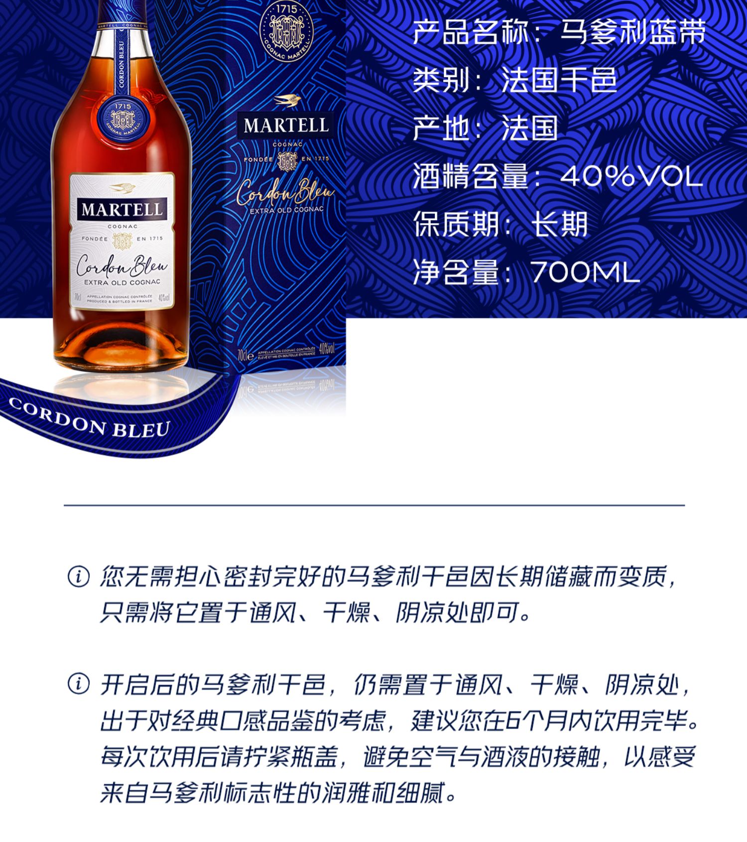【保乐力加】马爹利蓝带70CL*12/箱