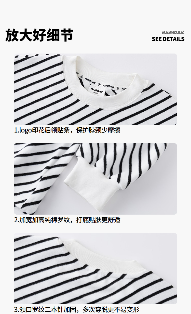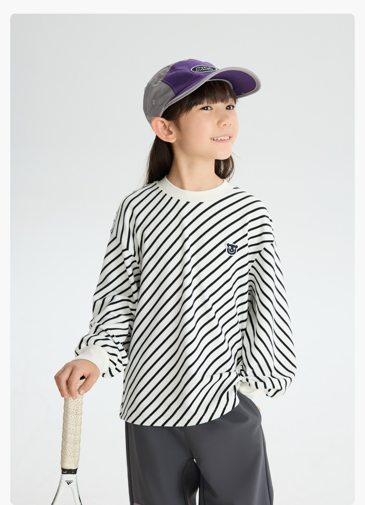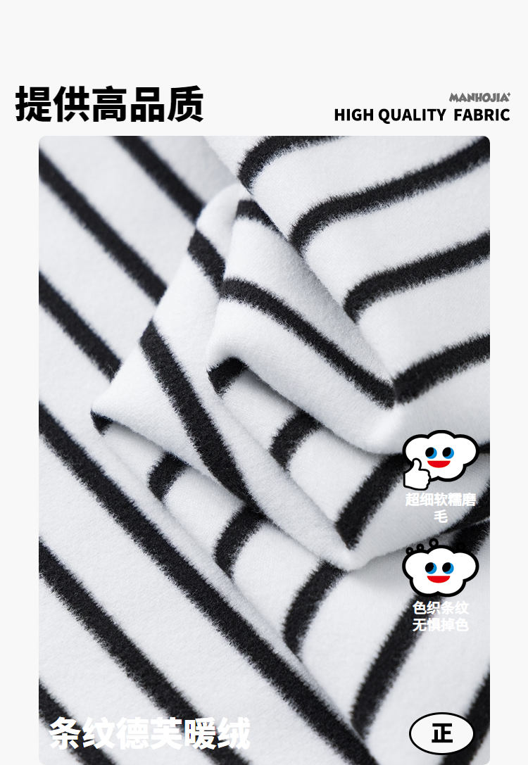 漫画家【条纹暖绒T】设计感斜向条纹内搭外穿暖绒打底长袖卫衣T