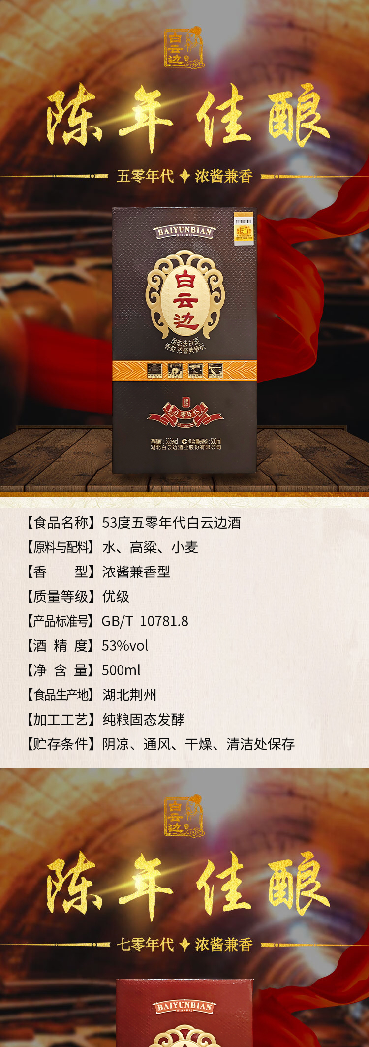 【浓酱兼香型】五零|七零|八零年代白云边白酒500ml 42-53度