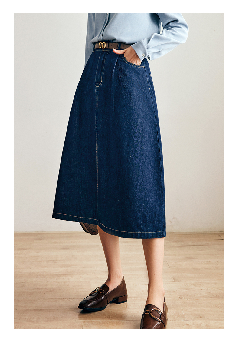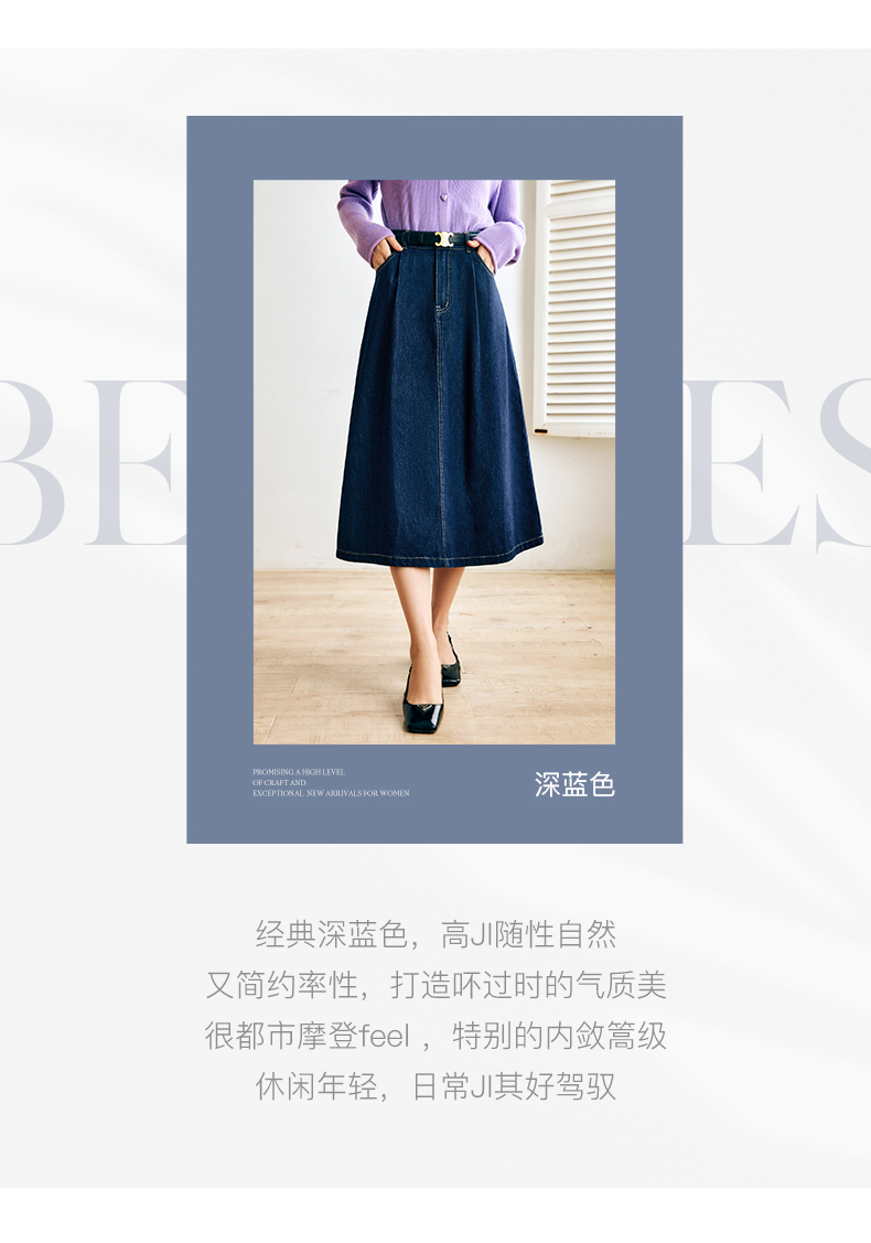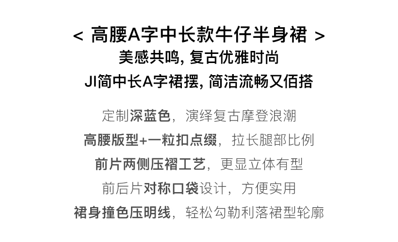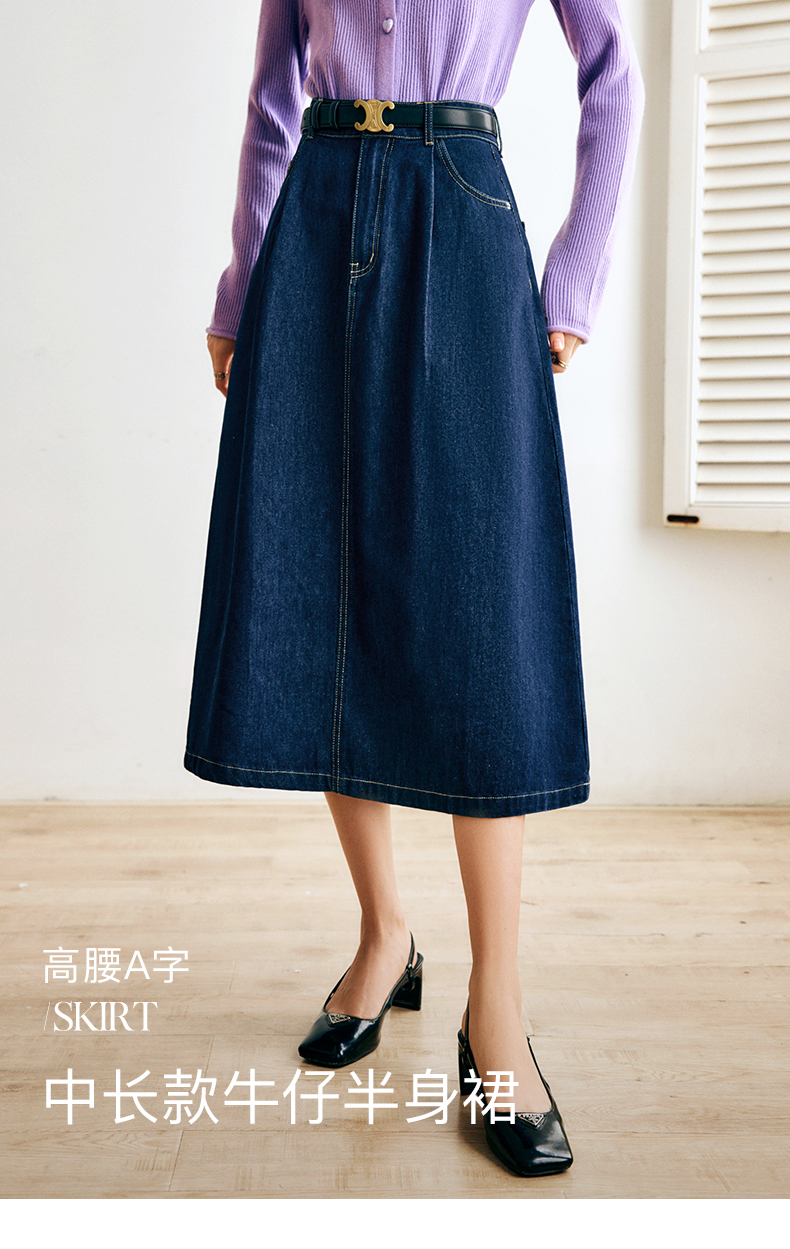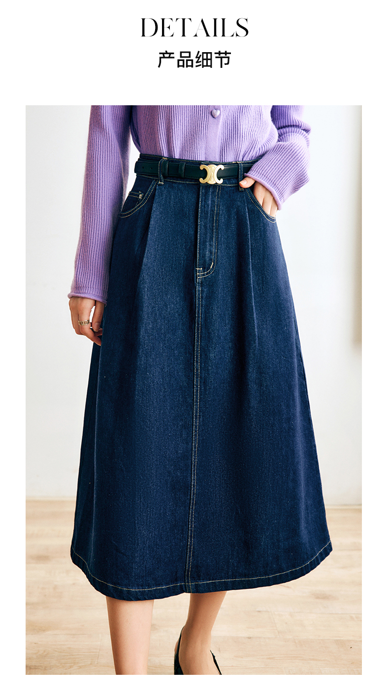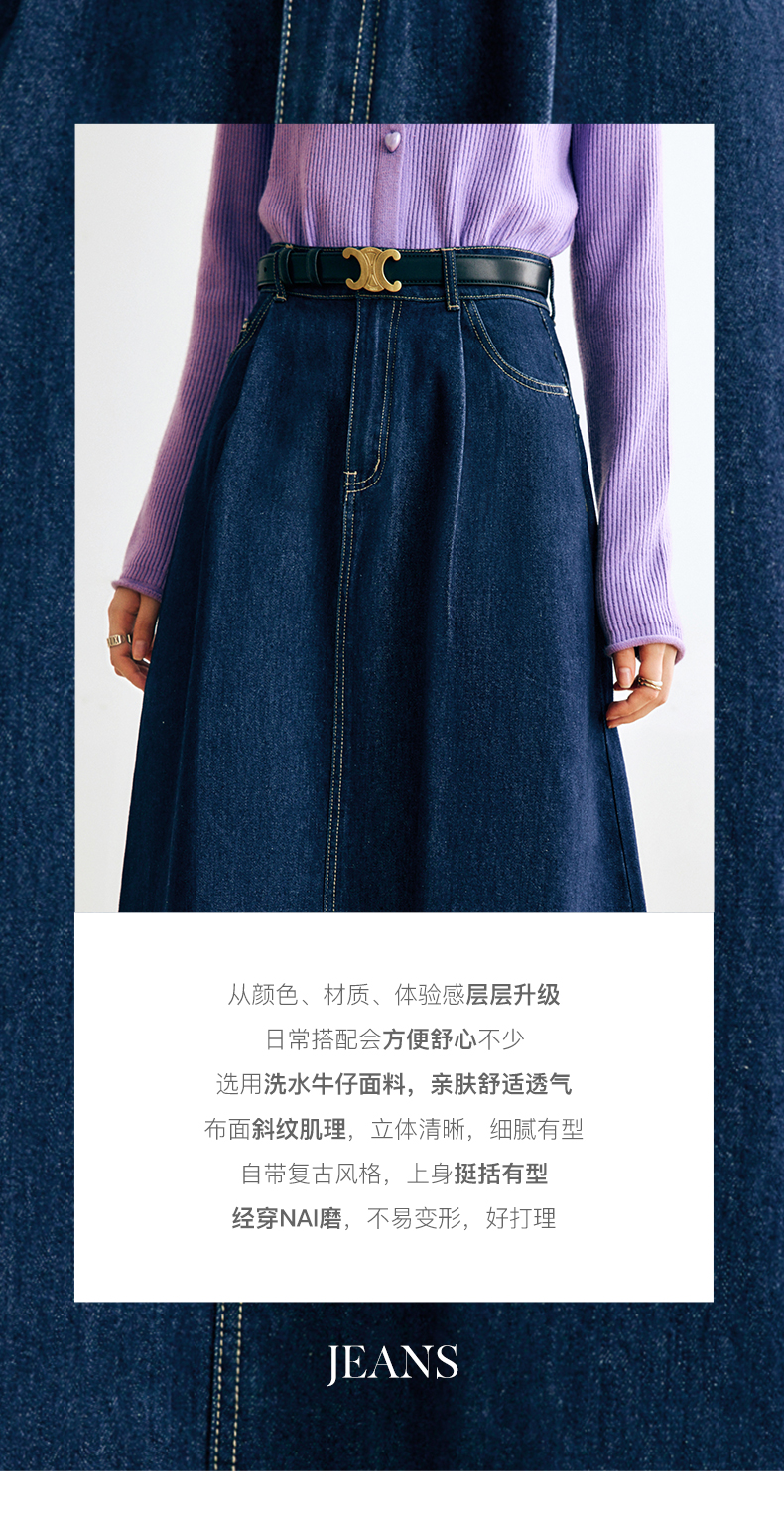 OLrain法式深蓝色牛仔半身裙女早秋2022新款气质高腰显瘦A字裙字