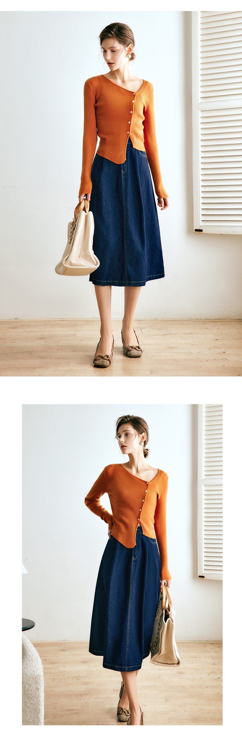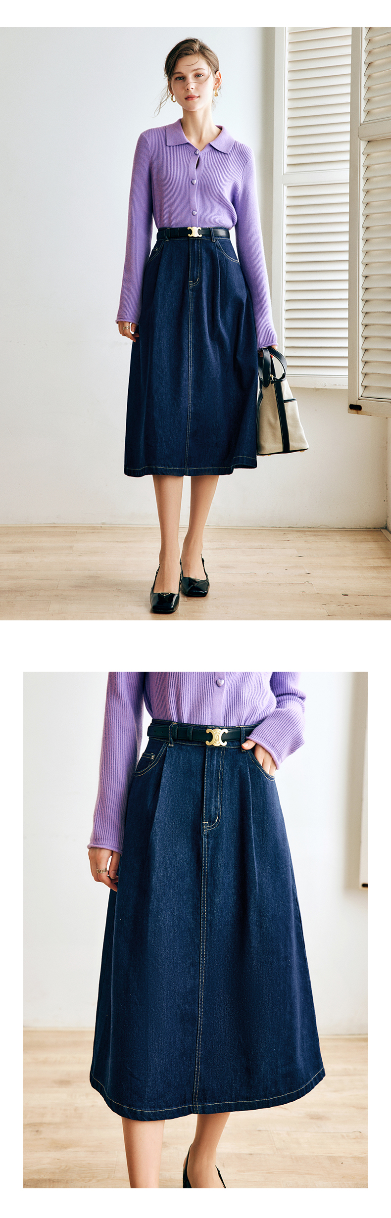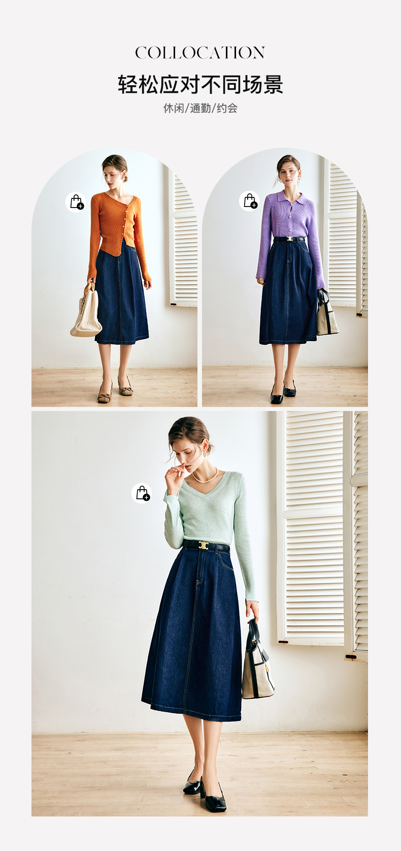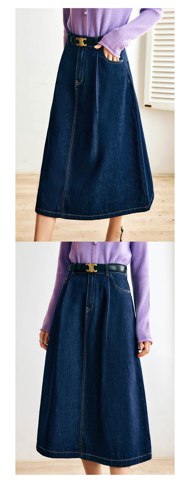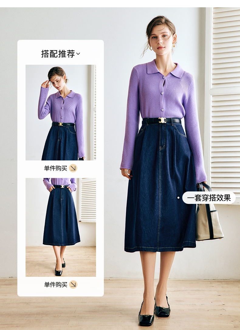 OLrain法式深蓝色牛仔半身裙女早秋2022新款气质高腰显瘦A字裙字