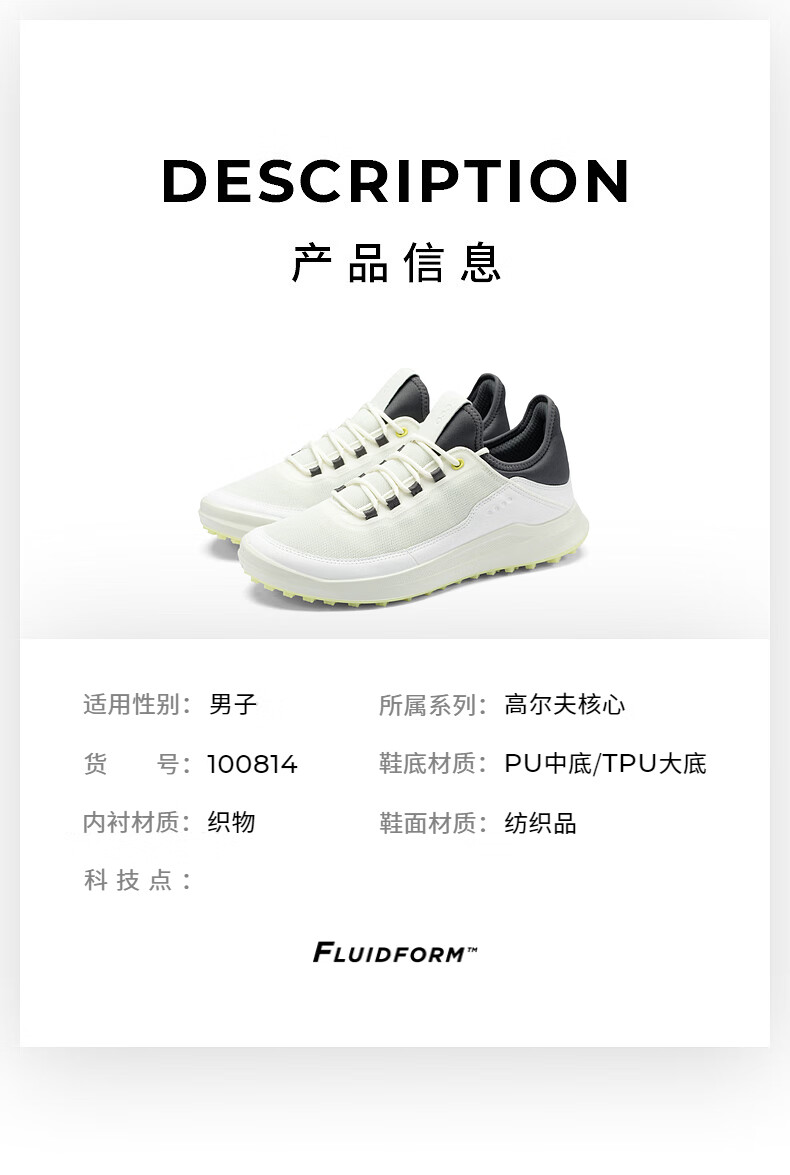 【高尔夫核心系列】ECCO男子高尔夫球鞋透气网眼回弹缓震舒适 春夏款 100814