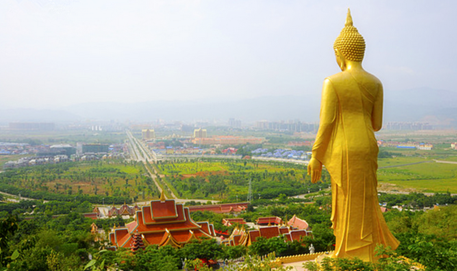 之后前往南传佛教的圣地、世界南传佛教文化中心【勐泐大佛寺】(游览时间 1.5 小时左右,景区观光车 单程 40 元/人,往返 60 元/人费用自理,如需乘坐可自行前往售票处购买),佛寺按照国家 AAAAA 级景区标准 打造,是在古代傣王朝的皇家寺院“景飘佛寺”的原址上恢复重建的。