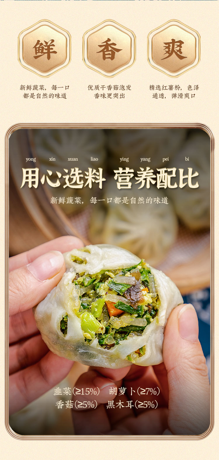 鲜肉小笼包1袋+梅干菜小笼包1袋+芝士烧麦1+蛋黄烧麦1+油条1+素包1(送3袋100g小油条+1份蒸笼纸)