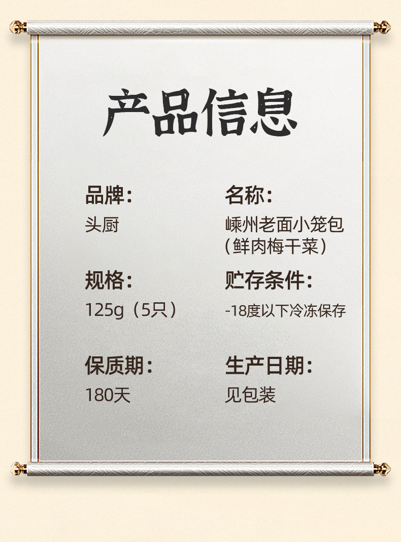【88到手10件!!】头厨|鲜肉小笼包1袋+梅干菜小笼包1袋+芝士烧麦1+蛋黄烧麦1+油条1+素包1(送3袋100g小油条+1份蒸笼纸)