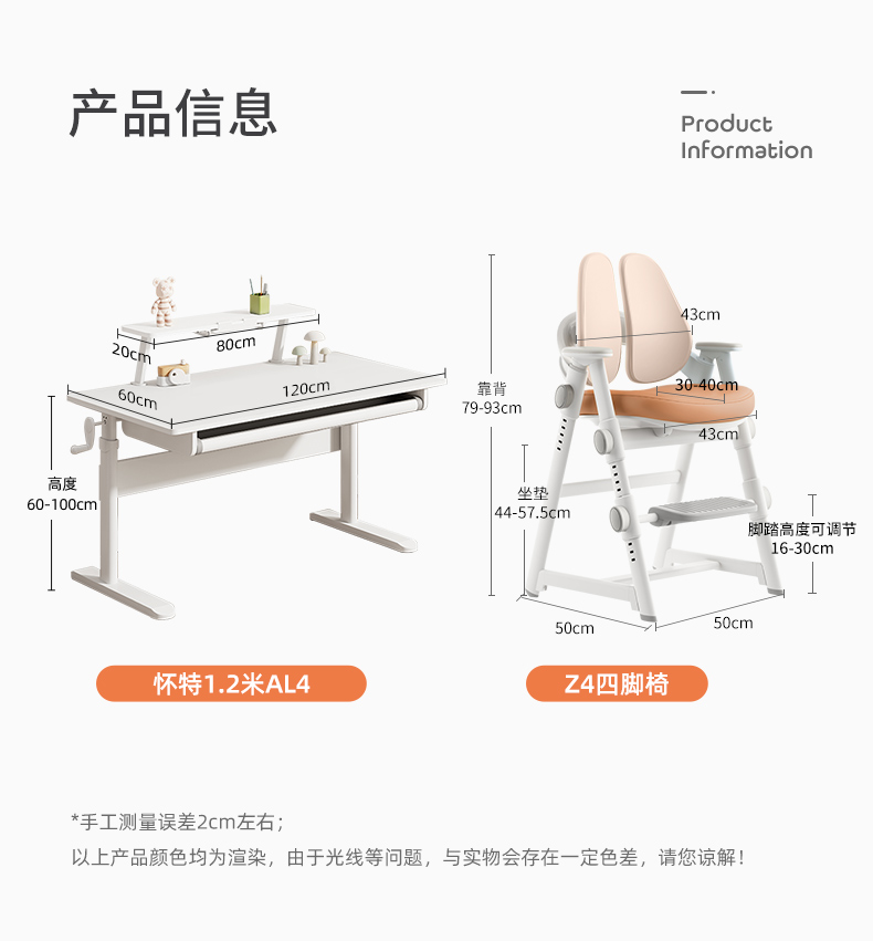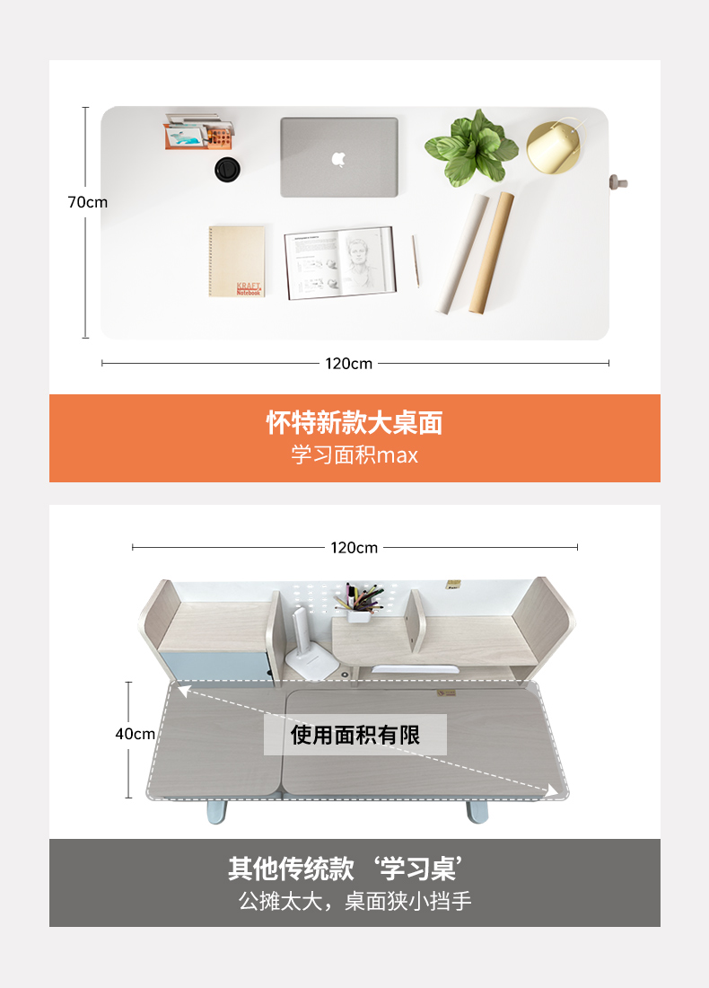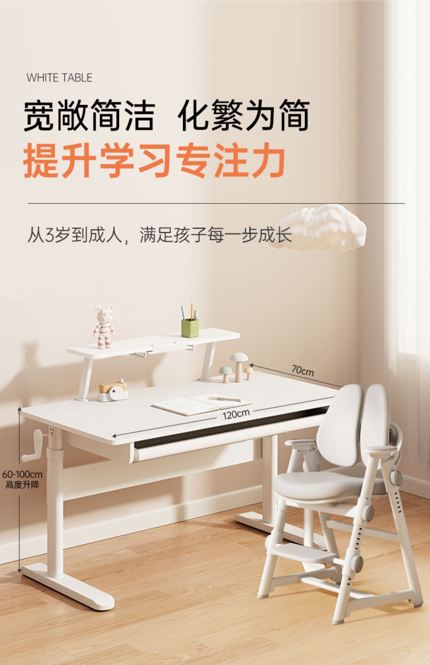 奇妙屋儿童可伸降怀特学习桌一体化学习桌椅套装