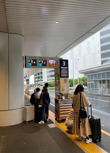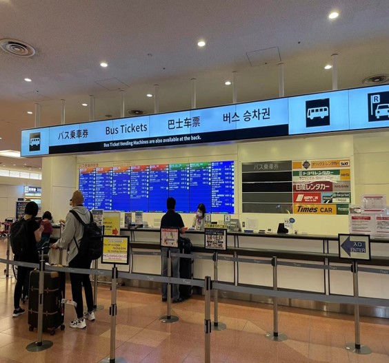 排队并在柜台出示【Airport Limousine Bus Voucher】,