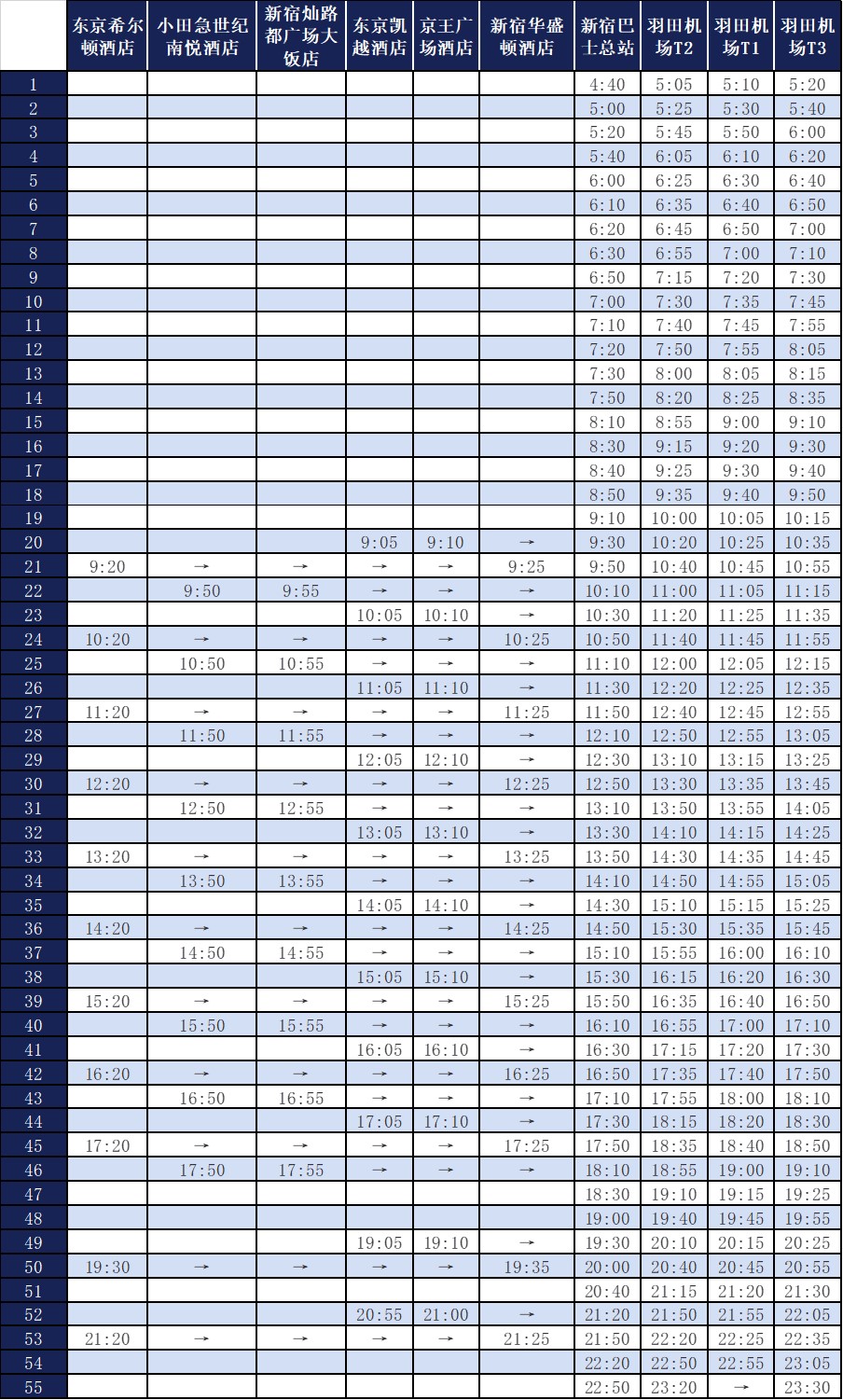 详情请参考官网https://www.limousinebus.co.jp/guide/timetable/