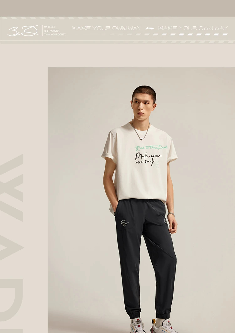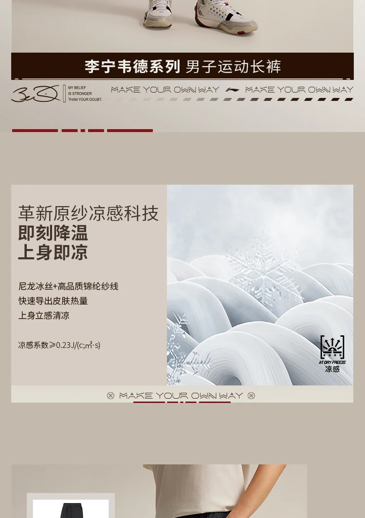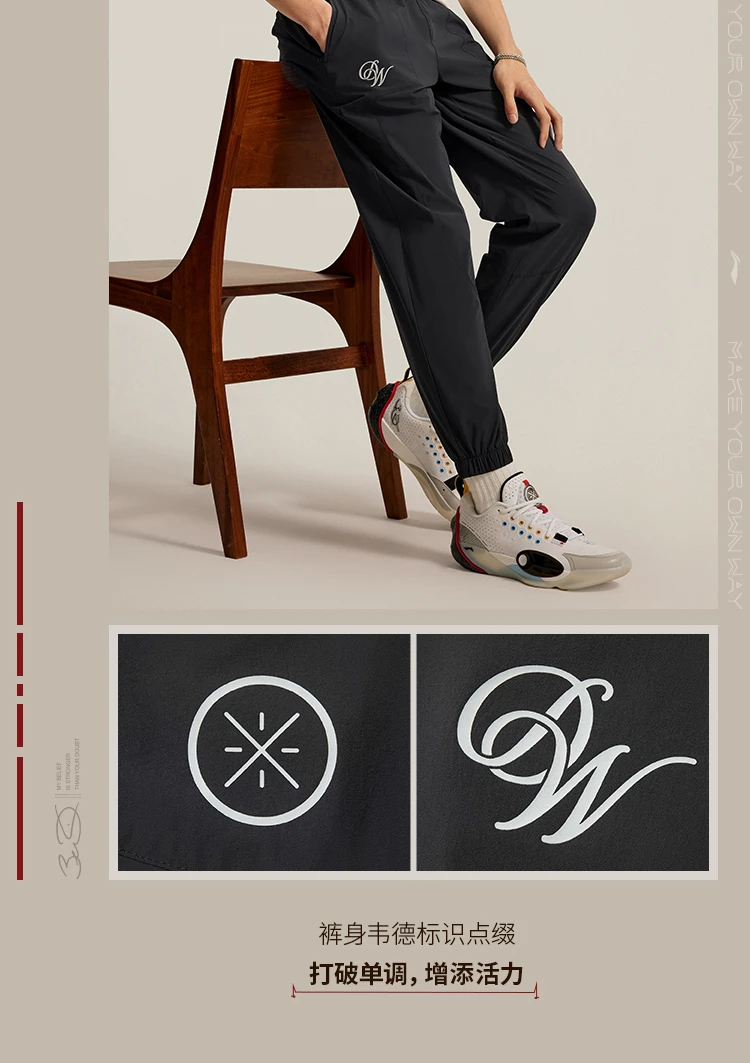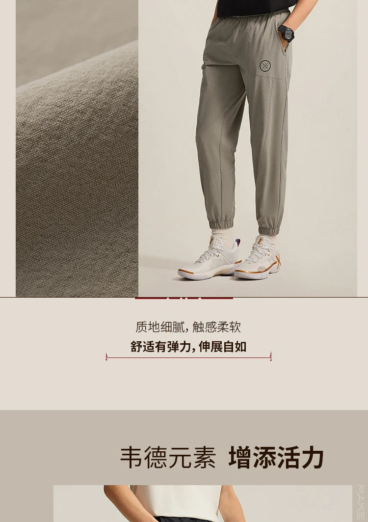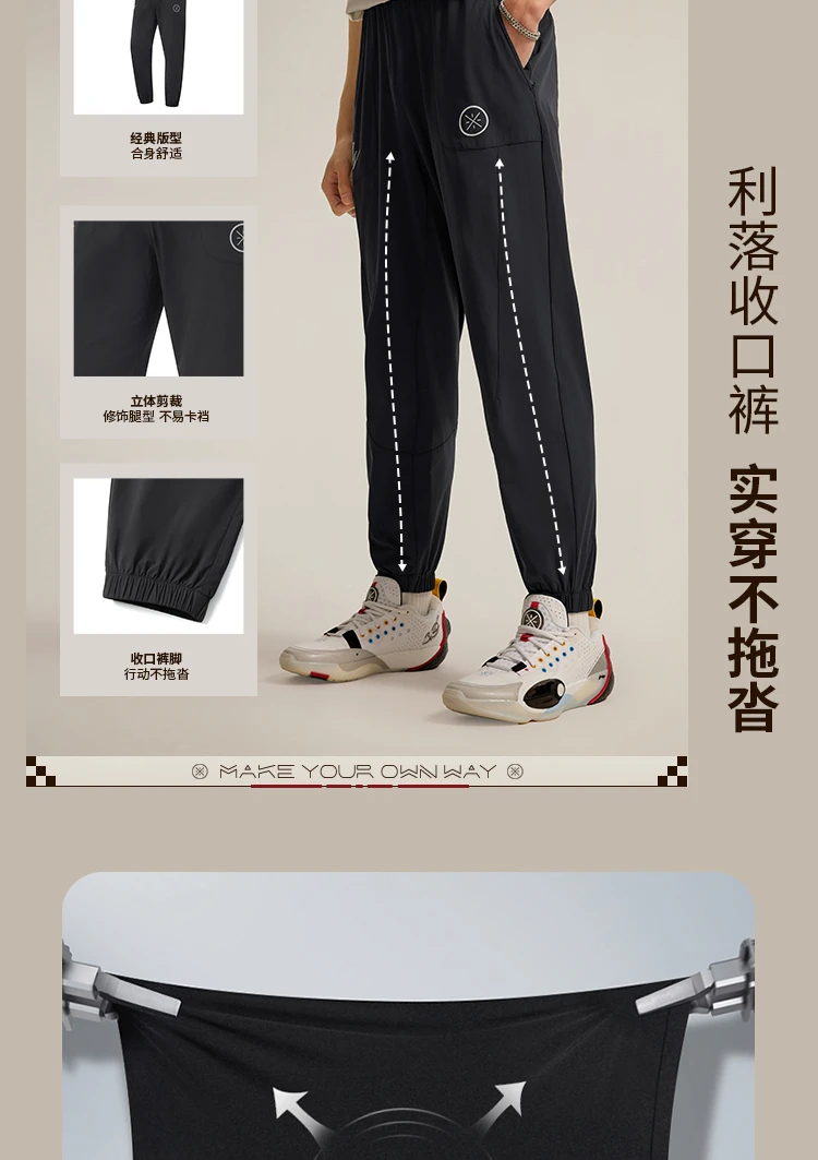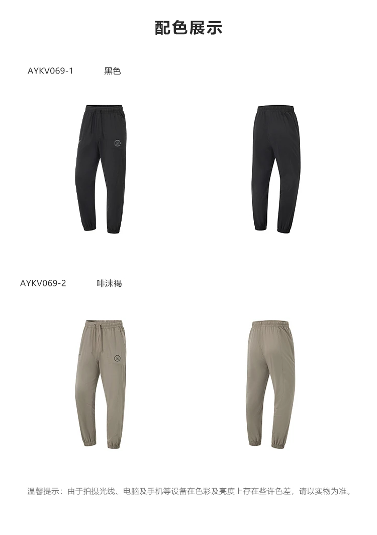 李宁韦德系列男子冰感舒适吸湿排汗基础收口裤运动长裤AYKV069-1