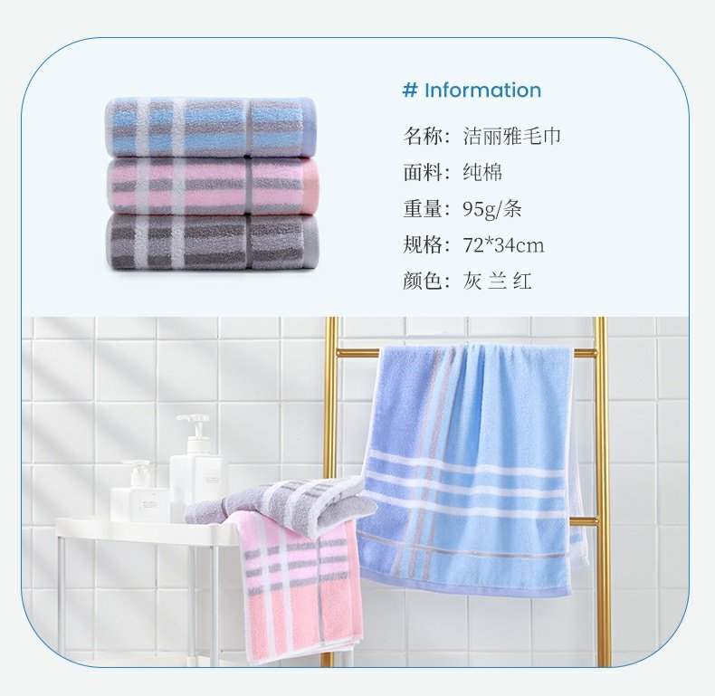 【纯棉加厚毛巾】3条装 95g/条 不掉毛舒适条纹