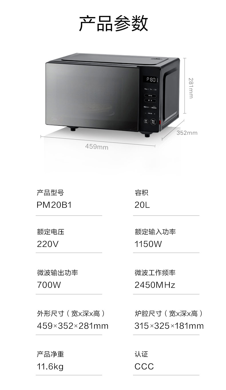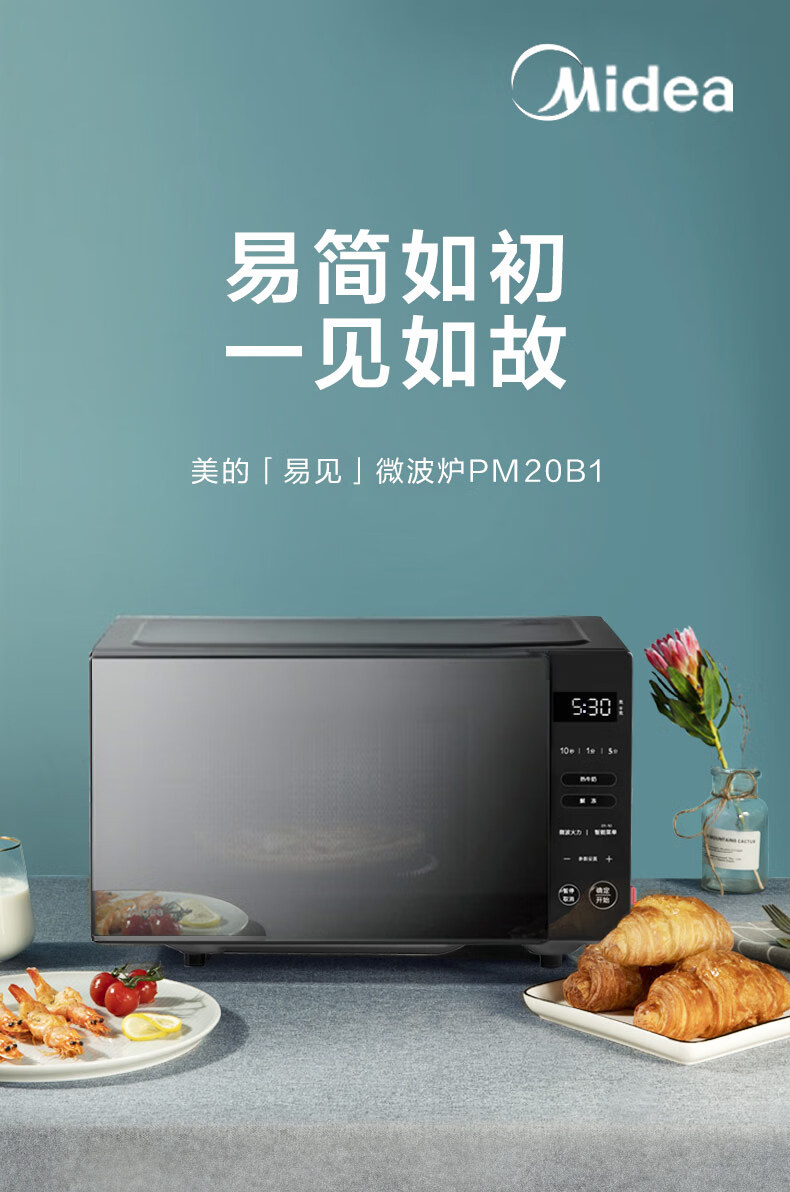 美的(Midea)线下同款 智能解冻 多功能家用微波炉20升 大平板均匀加热 智能菜单 PM20B1