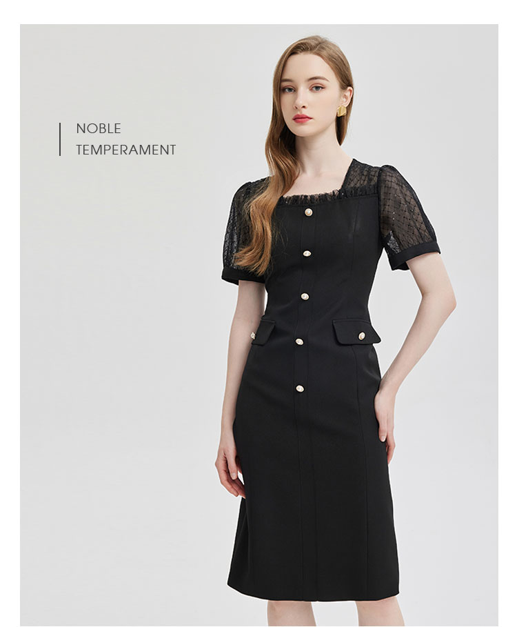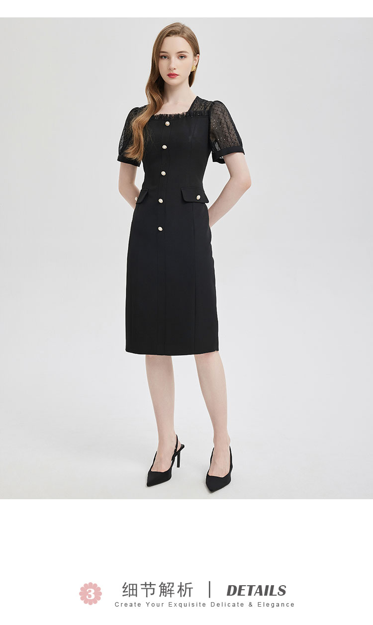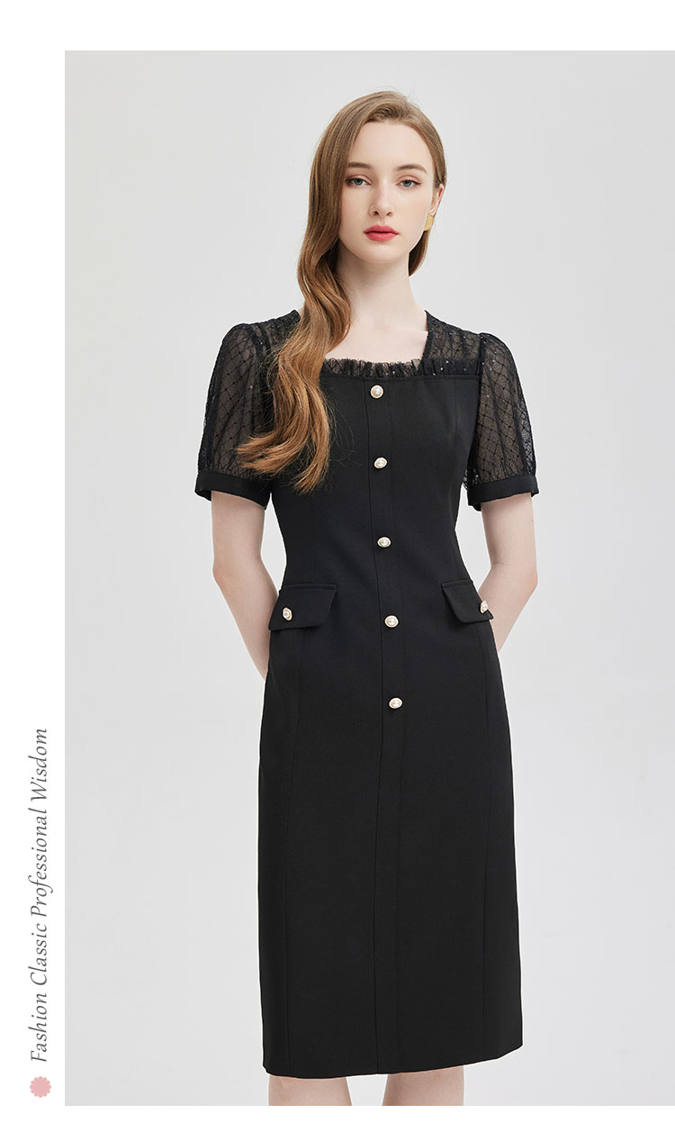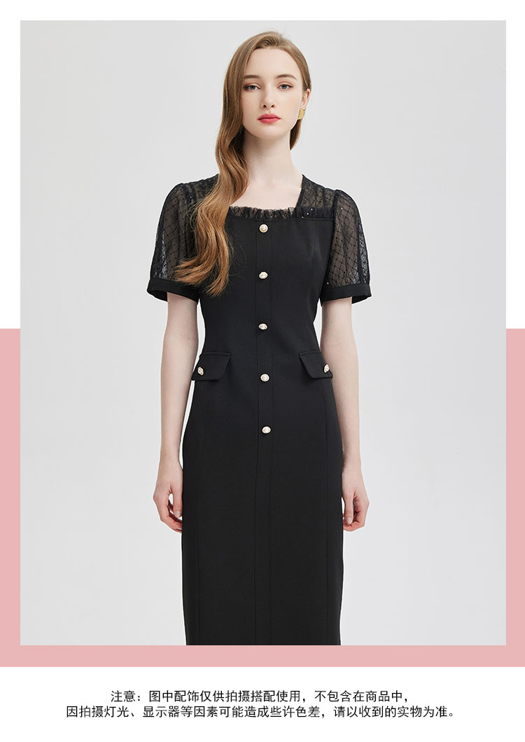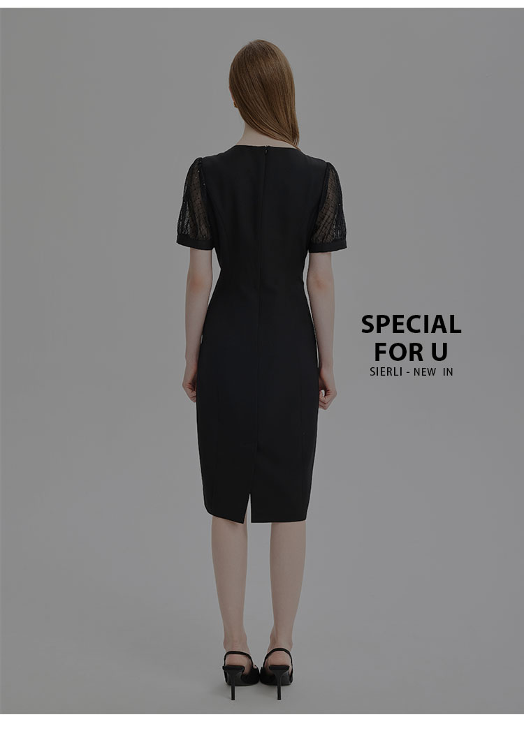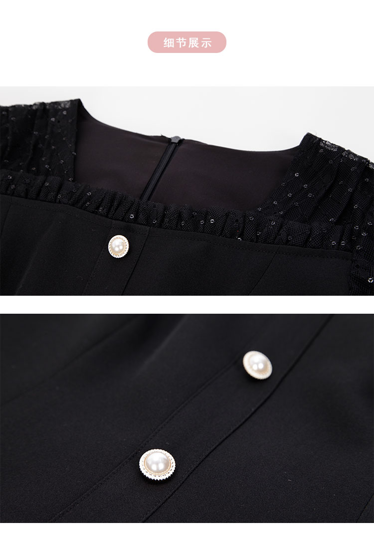 PF809斯尔丽2024新款法式蕾丝拼接包臀小香式白领通勤高级感显瘦连衣裙