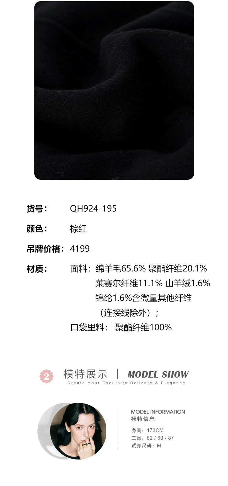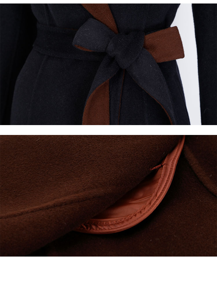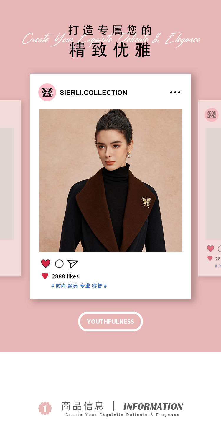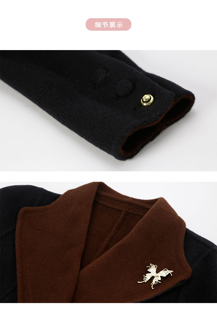 QH924斯尔丽25新款含羊绒性强修身气质高雅流金蝴蝶胸花长款羊毛大衣