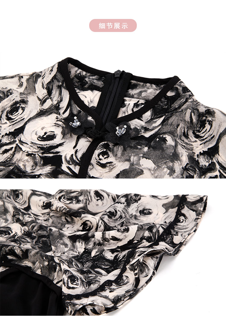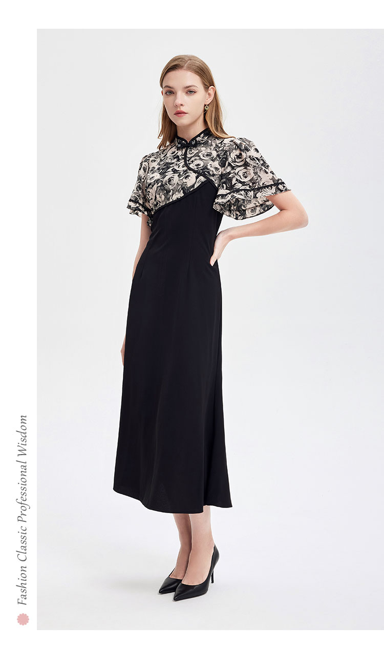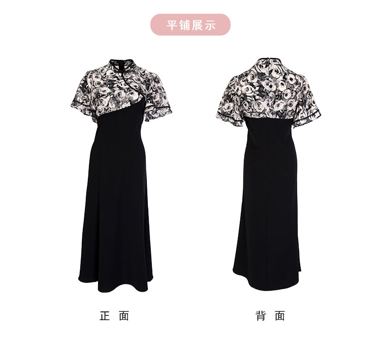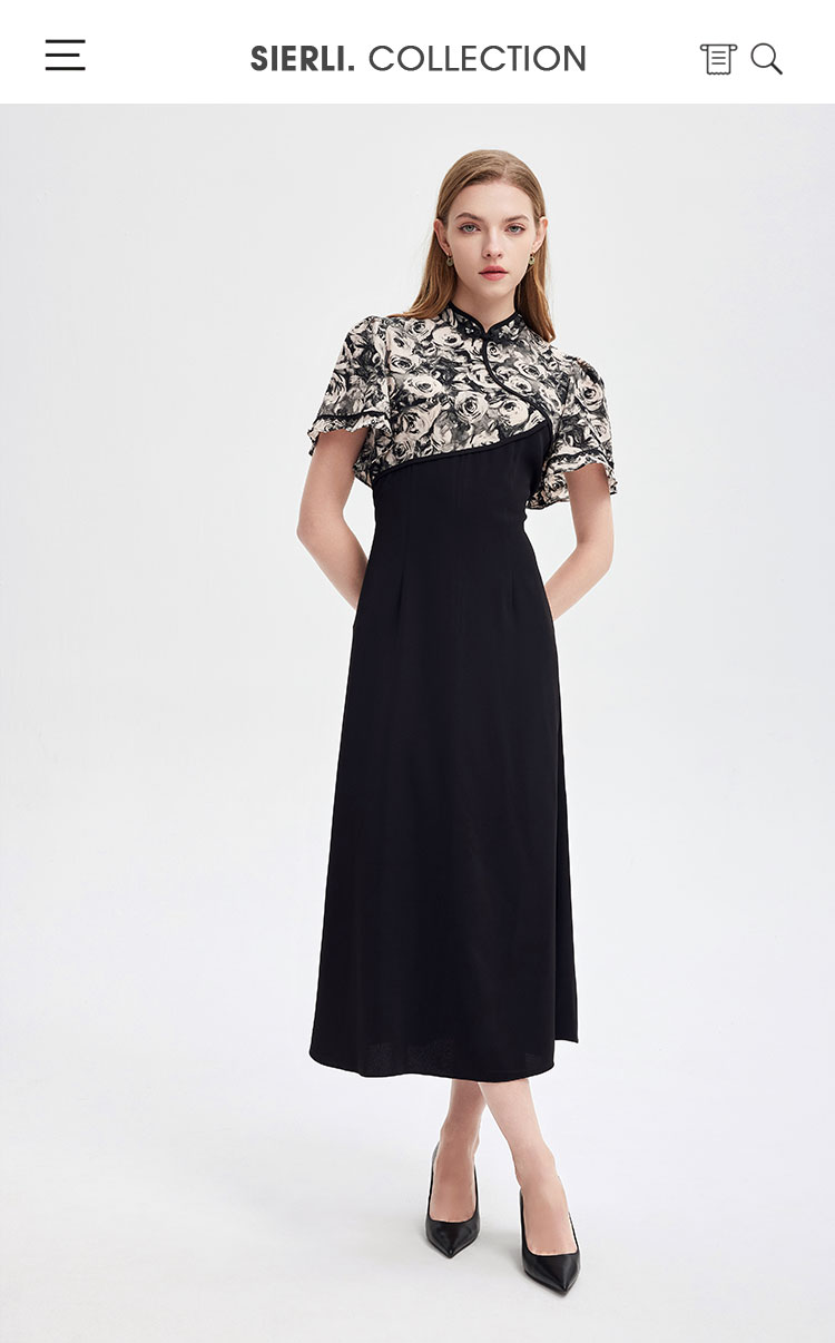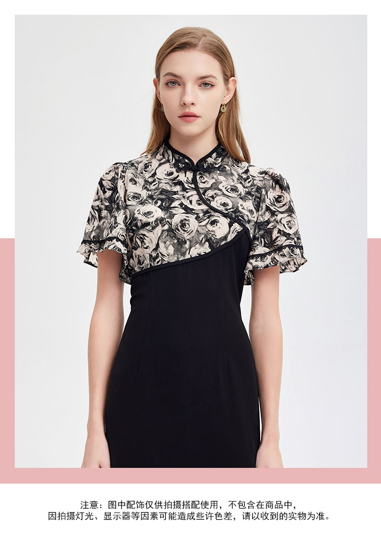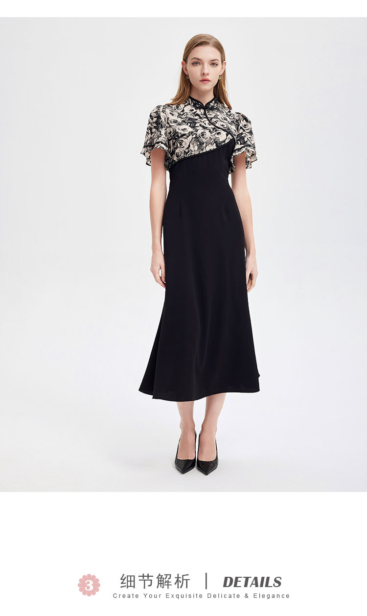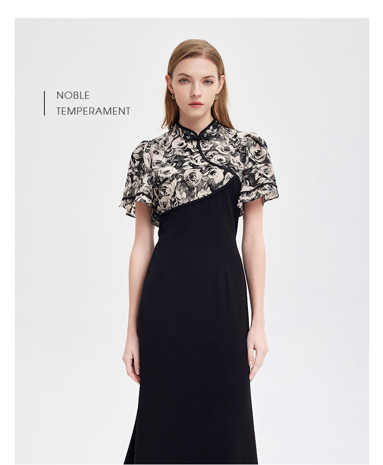 PF826斯尔丽2024新款国风改良版旗袍滚边撞花色不对称收腰A摆连衣裙