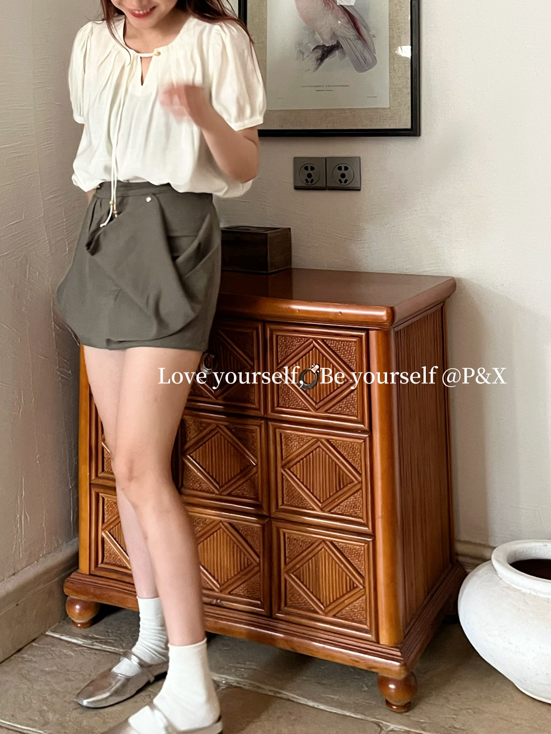 P&X设计师女装夏季显瘦时尚设计感半身裤裙 824207673 灰绿