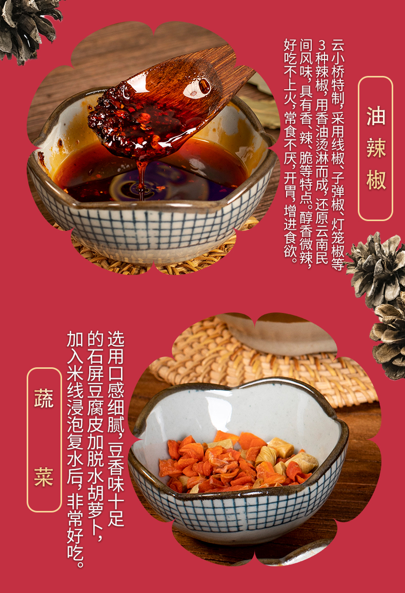 云南保山施甸小锅米线四种口味混装,小锅焖肉味/傣味木瓜酸汤味/+菌菇土鸡过桥米线味+大理凉拌米线味(共4包)