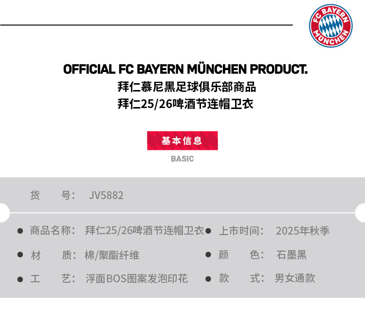 【官网同款】拜仁足球俱乐部丨25-26赛季啤酒节连帽卫衣运动休闲外套