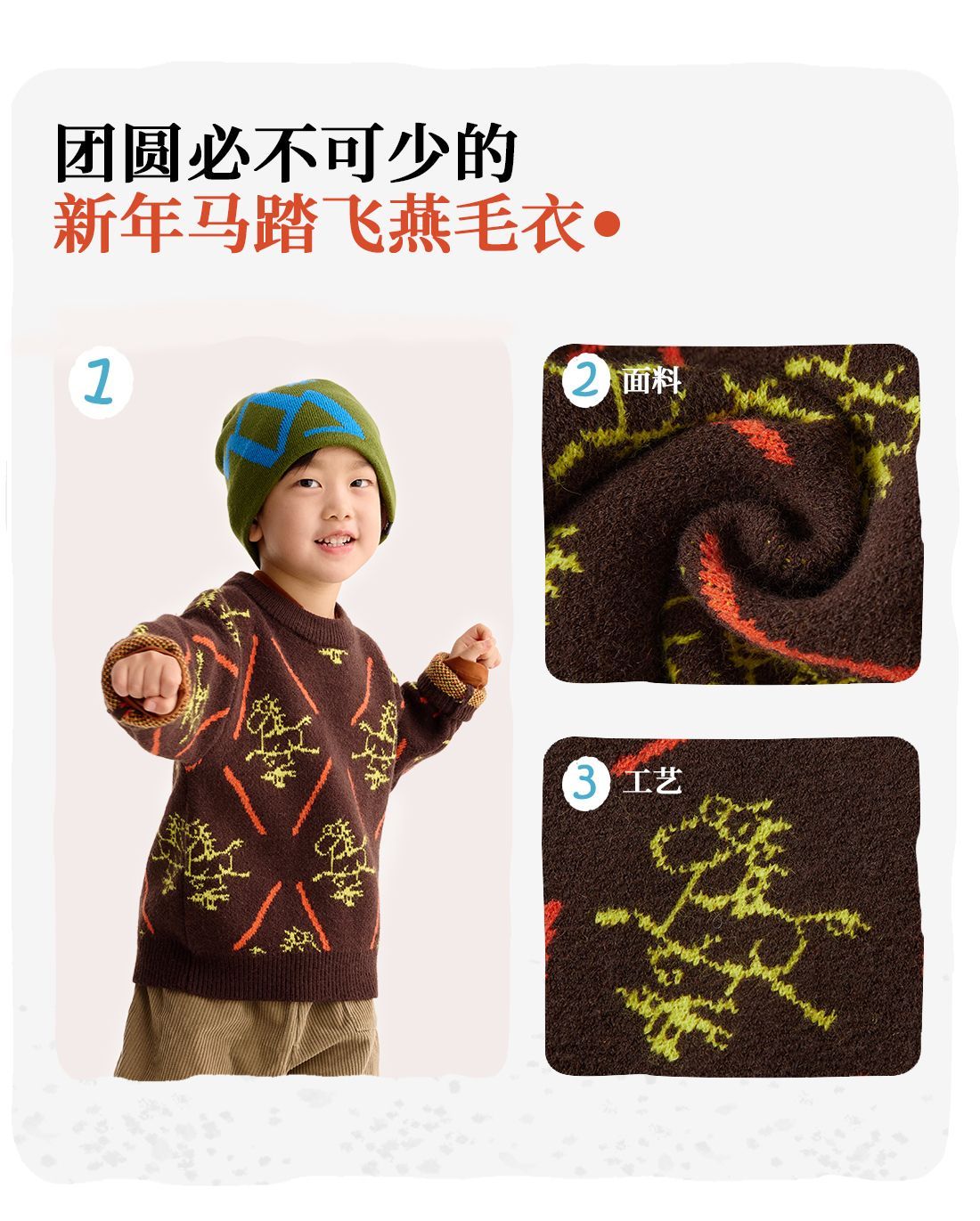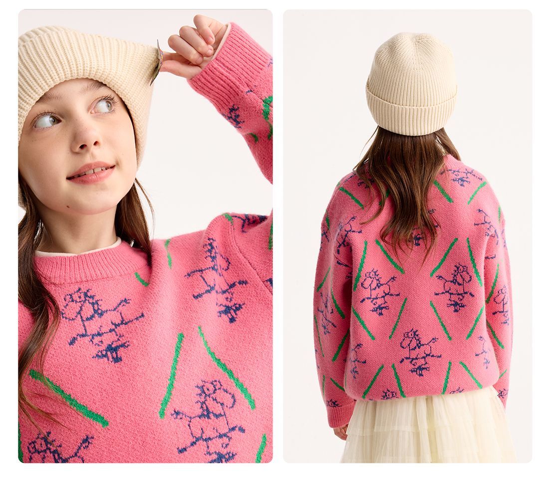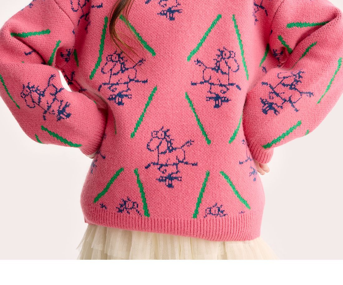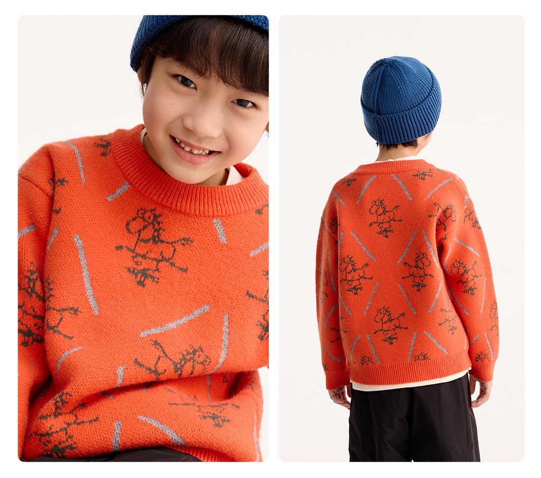 【超级马力】咕噜日记儿童新年满印提花毛衣冬季男女童春节氛围感PDMY2520