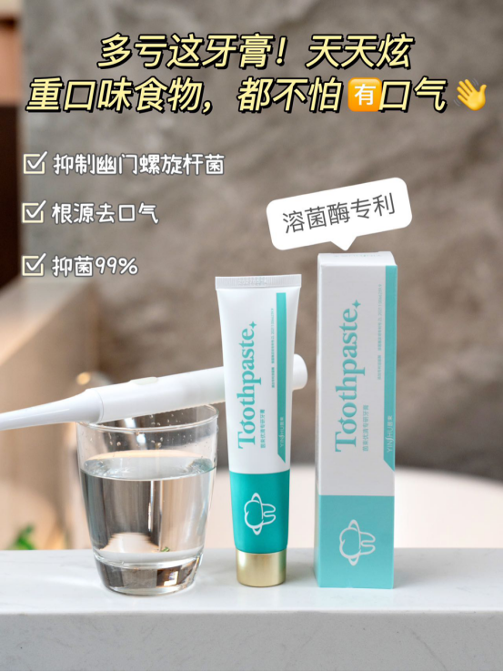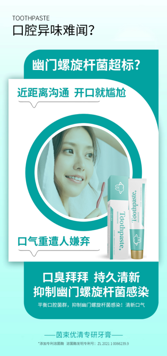 生物溶菌酶✖️益生菌✖️8大植物精萃配方! 市面上独一无二の抗幽门螺杆菌专利牙膏配方!让“有害菌”无处可逃🔥 ➡️先生物溶菌❌ ➡️益生菌灭菌❌ ➡️天然植物精粹抑菌灭菌❌ 让口臭、大黄牙🦷统统达咩👋呵护牙龈健康