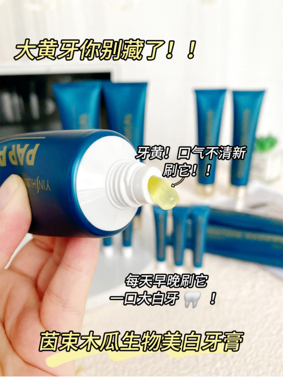 这款牙膏主打成分木瓜蛋白酶✔️ 木瓜生物美白㊙️方 早在几百年前,就风靡欧洲了🔥🔥🔥美白效果备受贵族青睐,完全不伤害牙齿! 如今茵束结合现代美牙黑科技💡 7天见效,告别黄、垢、臭‼️