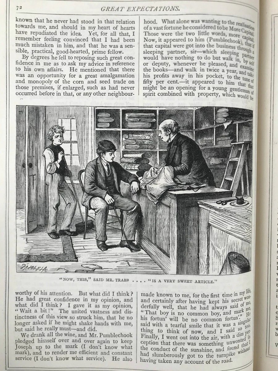 约19世纪后期 狄更斯《远大前程》 30幅插图 漆布精装16开