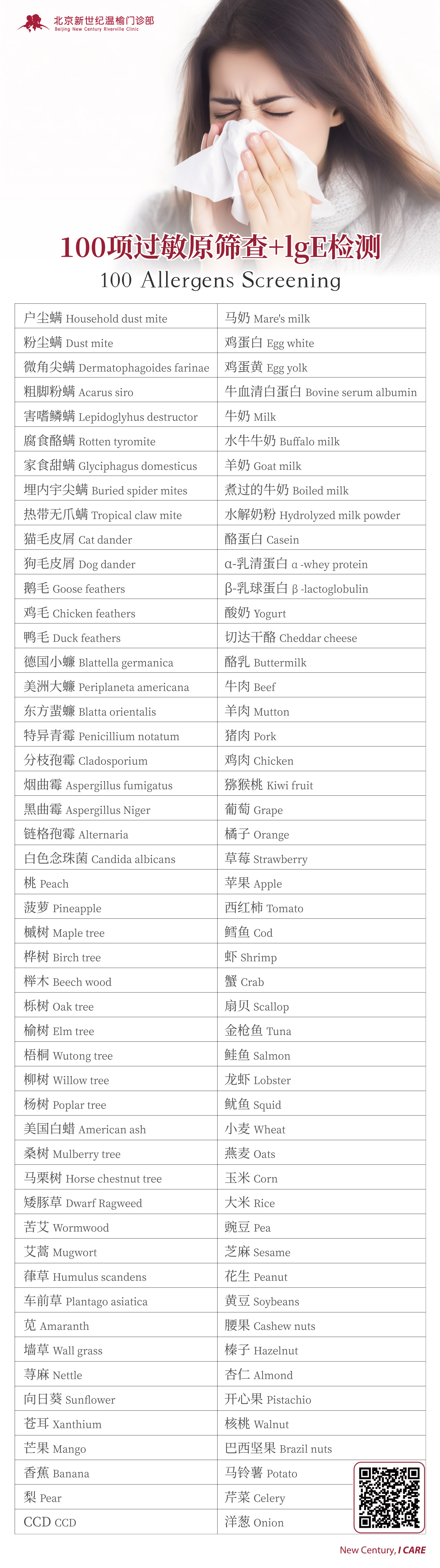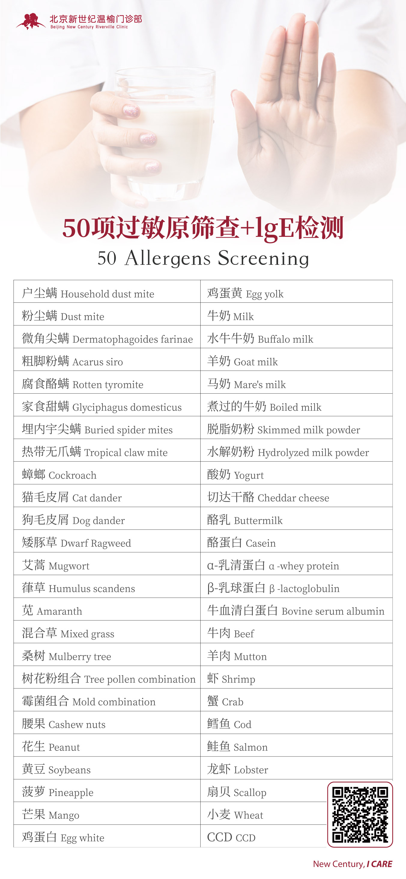 50项/100项过敏原+IgE筛查 Allergen screening*