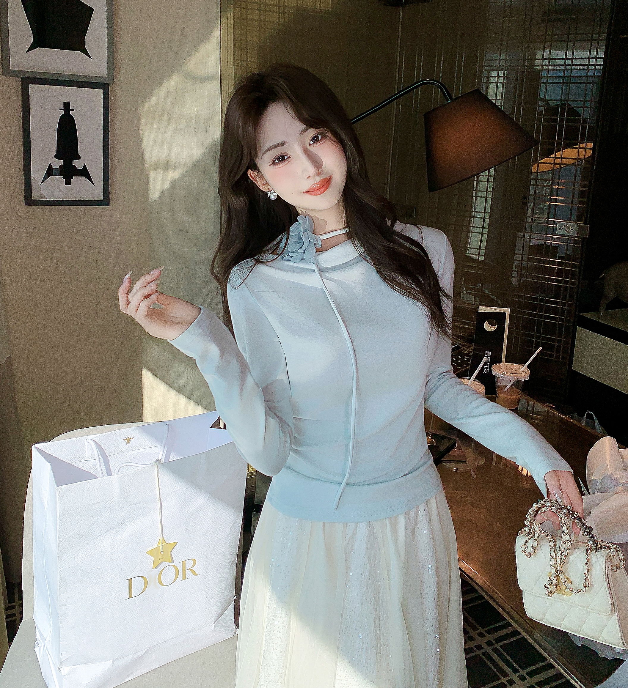 张心子【布蕾甜茶】富家千金风气质雪纺衫上衣 U2504050