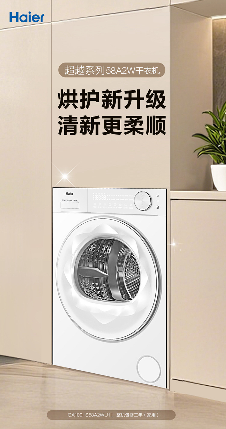 海尔(Haier)洗烘套装 XQG100-LEU58A2WU1+GA100-S58A2WU1
