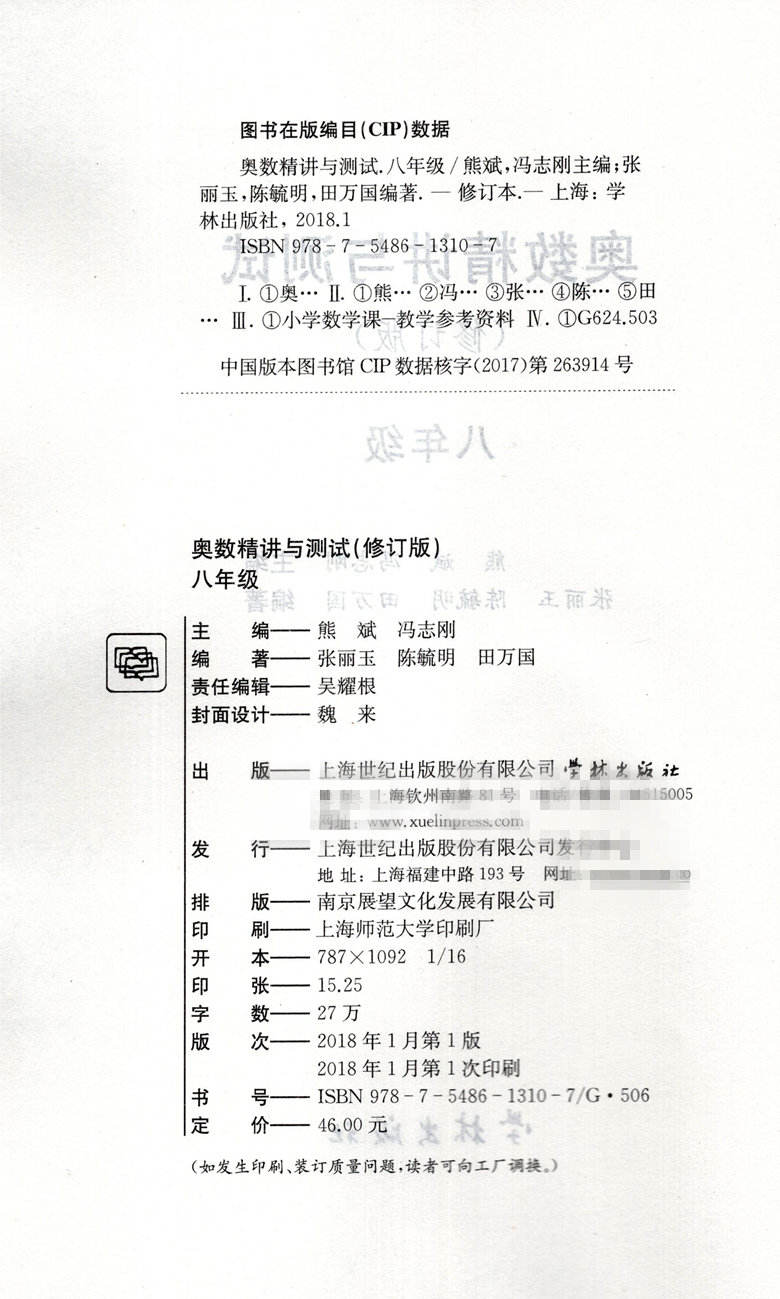 修订版 奥数精讲与测试八年级/8年级 中学生8年级奥数/初中八年级奥数教材 8年级奥数学习 从入门到精通