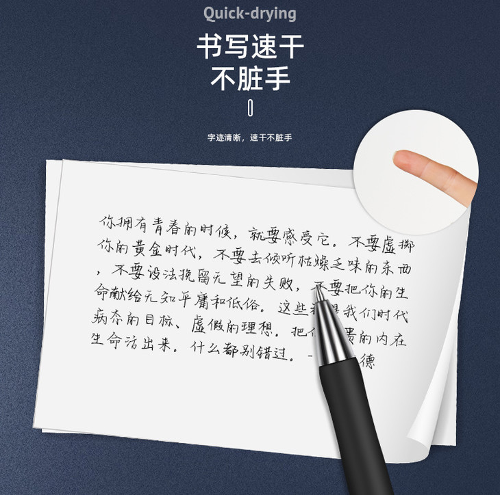 🌟书写速干,拒绝晕染/黑手! 只需⏰短短几秒,墨水就干 大面积书写时也不怕弄脏手🙋🏻♂🙋🏻♀ 轻轻松松写出干爽无墨痕的卷面🤟 热知识,整洁的卷面更能获得老师的青睐哦~