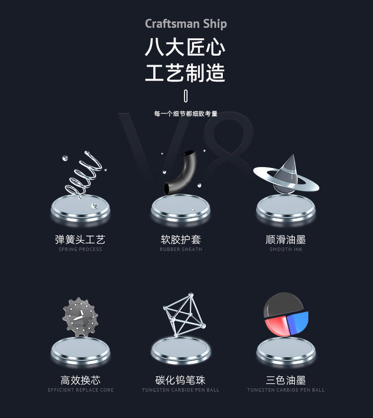 🌟我们的v8中性笔,采用精工不锈钢子弹头设计! 🌟书写稳定,手感不飘,没有一丝丝晃动感 🌟防摔性能拉满,再也不怕笔一掉就报废了 🌟大考关键时刻,给你不怕断墨的安心~