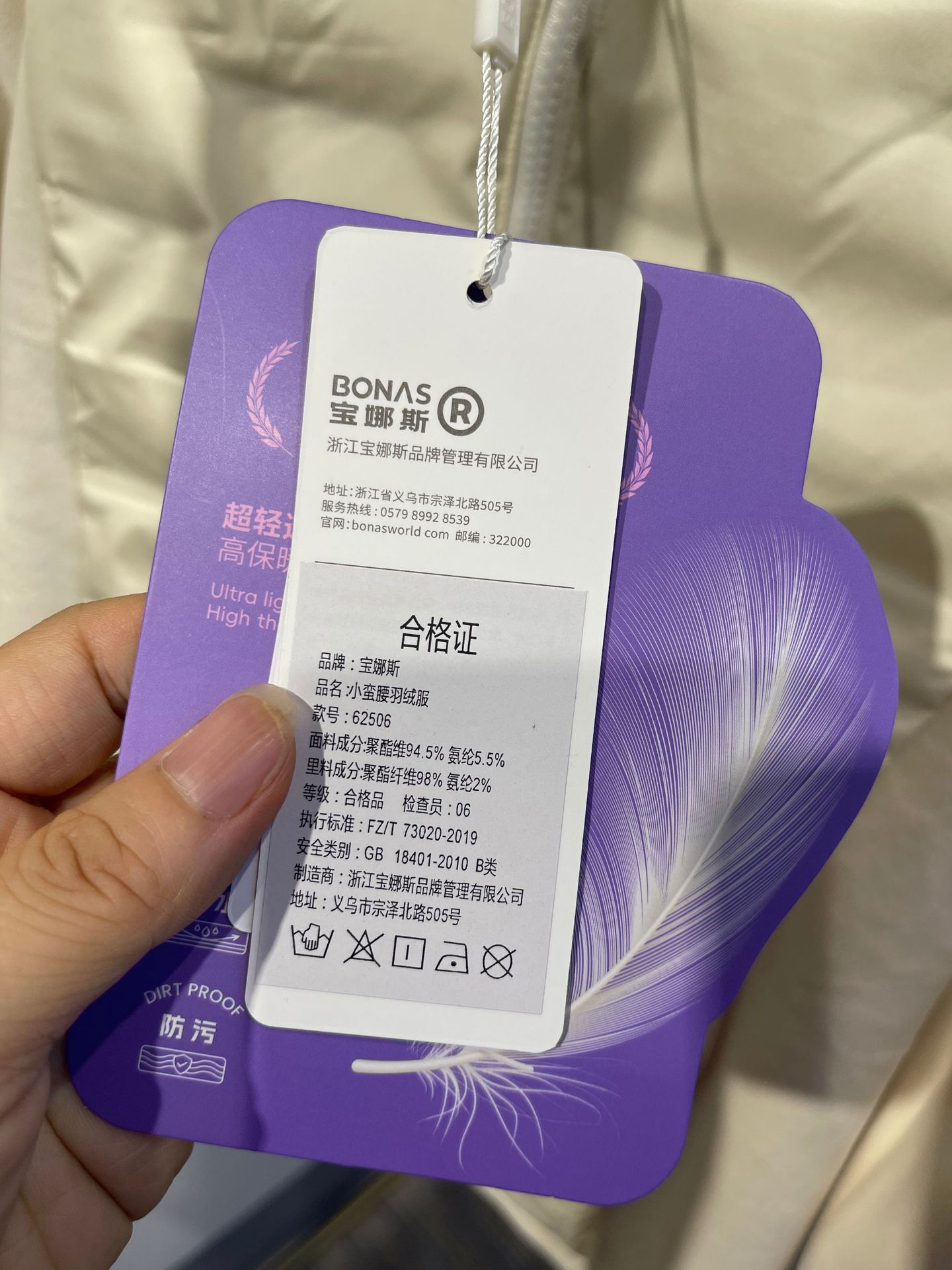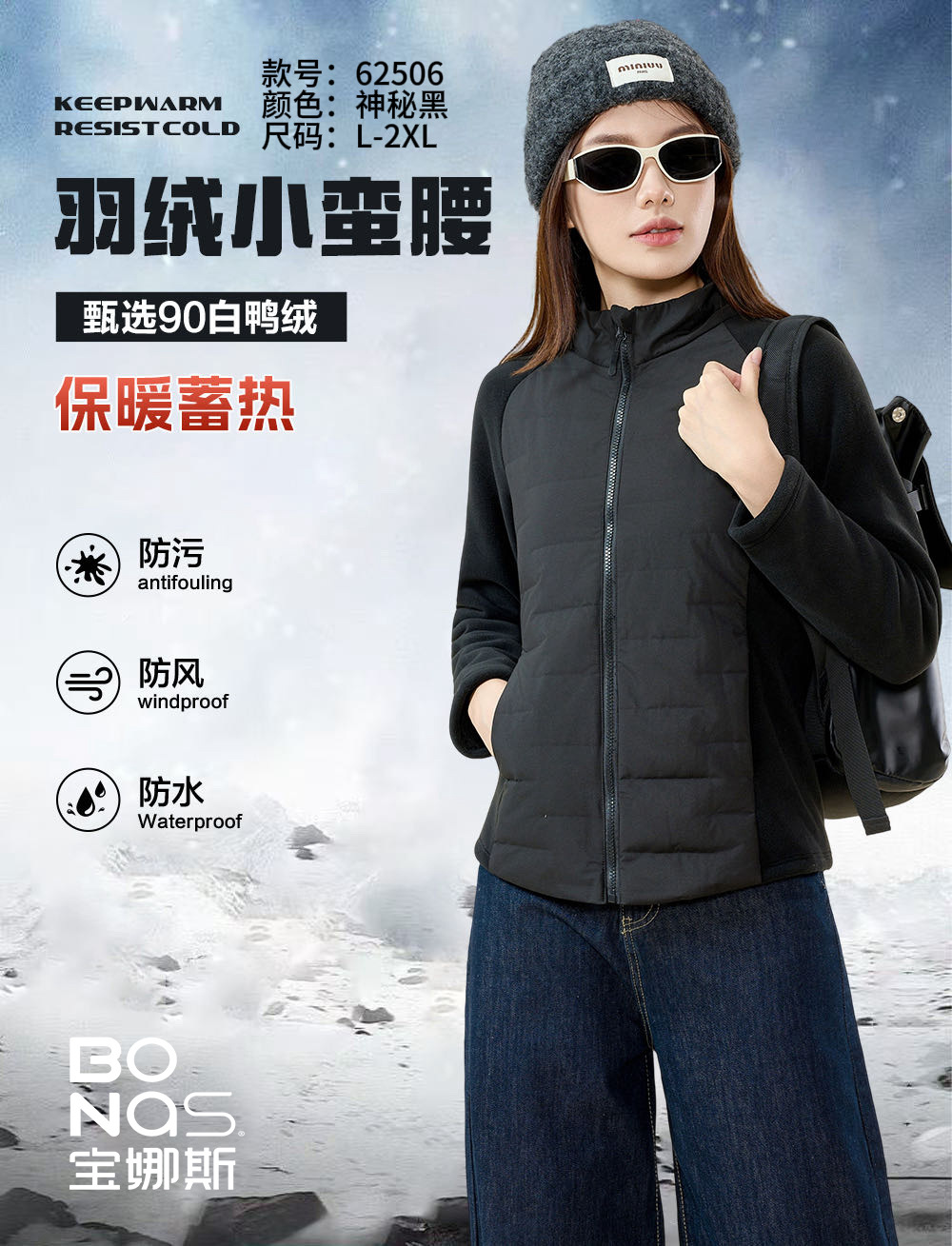 【弹力修身锁温防风】宝娜斯62506羽绒服小蛮腰2025秋冬新款90白鸭绒立领保暖外套修身。ja