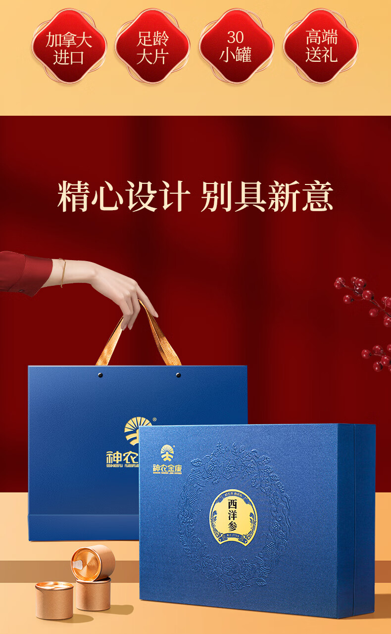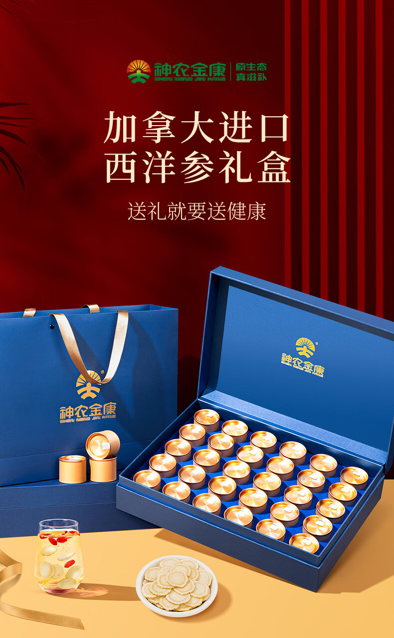 【礼盒】神农金康 加拿大西洋参礼盒120g(30罐)新中式滋补礼 原生态真滋补 喝护家人健康