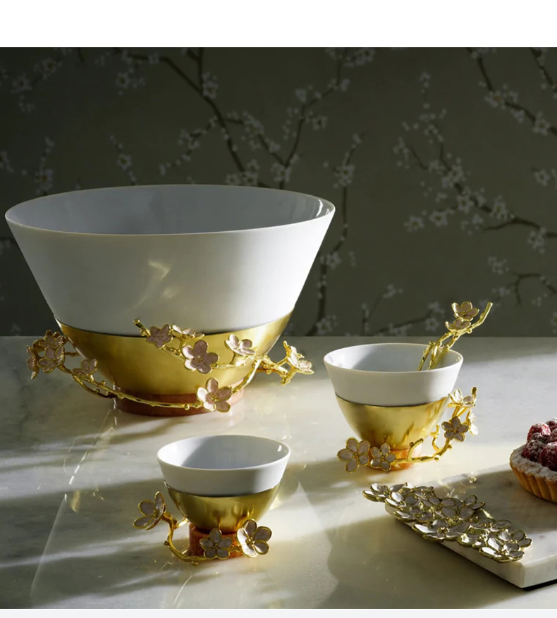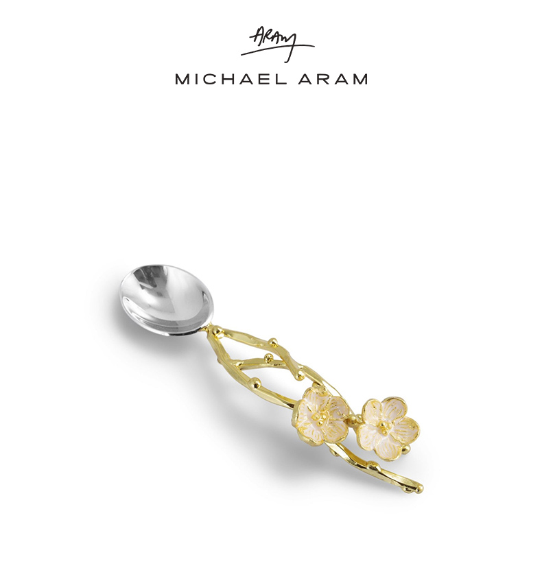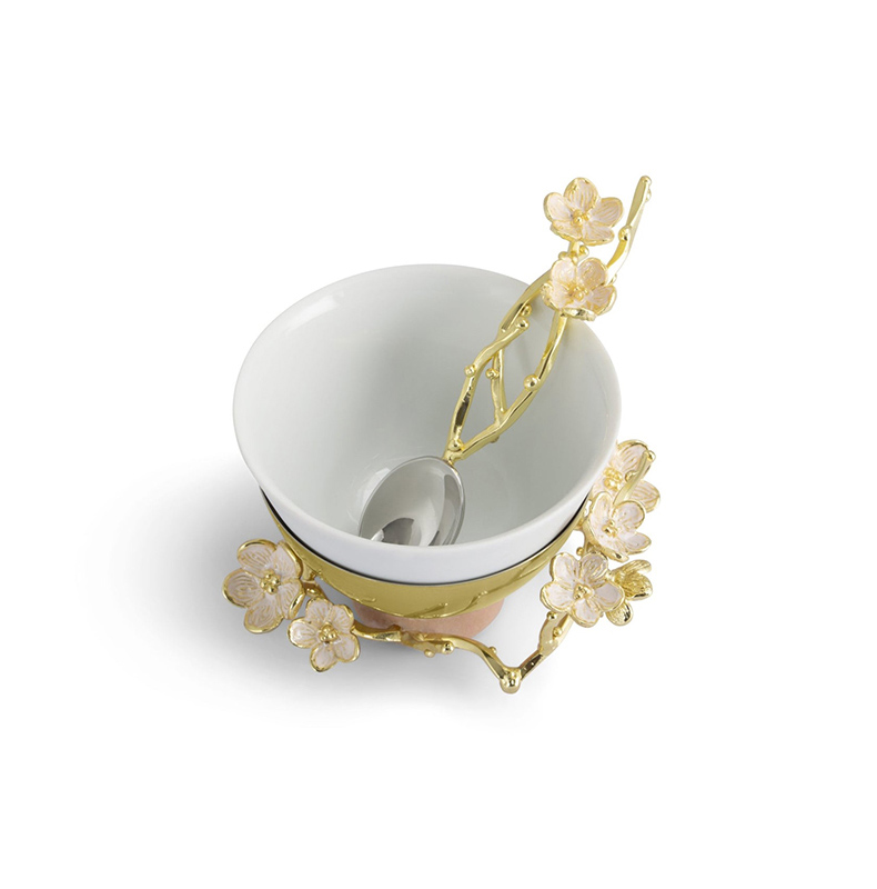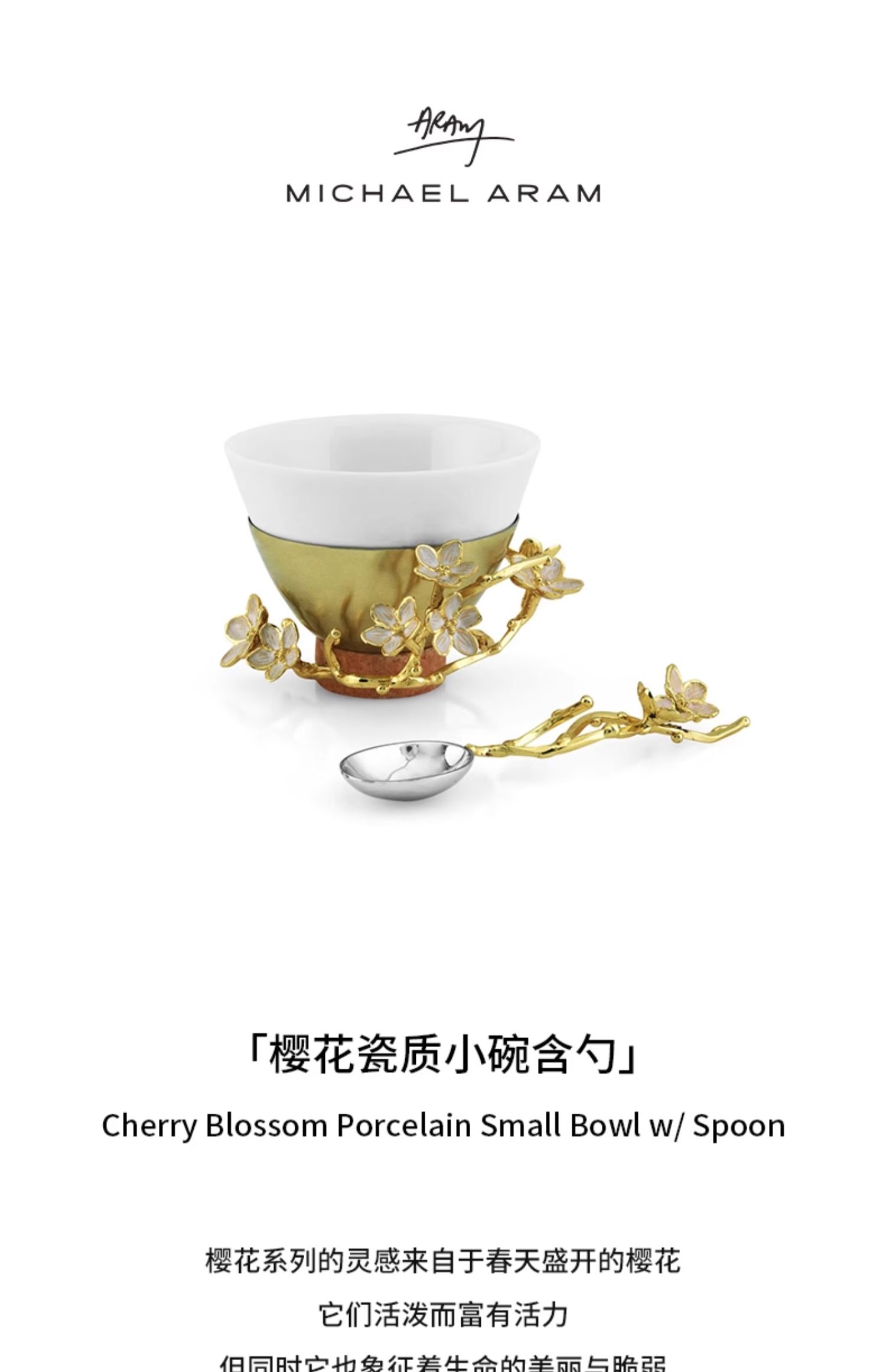 Michael Aram 樱花瓷质小碗含勺 印度手工制作樱花系列陶瓷金属小碗配勺礼物女轻奢风