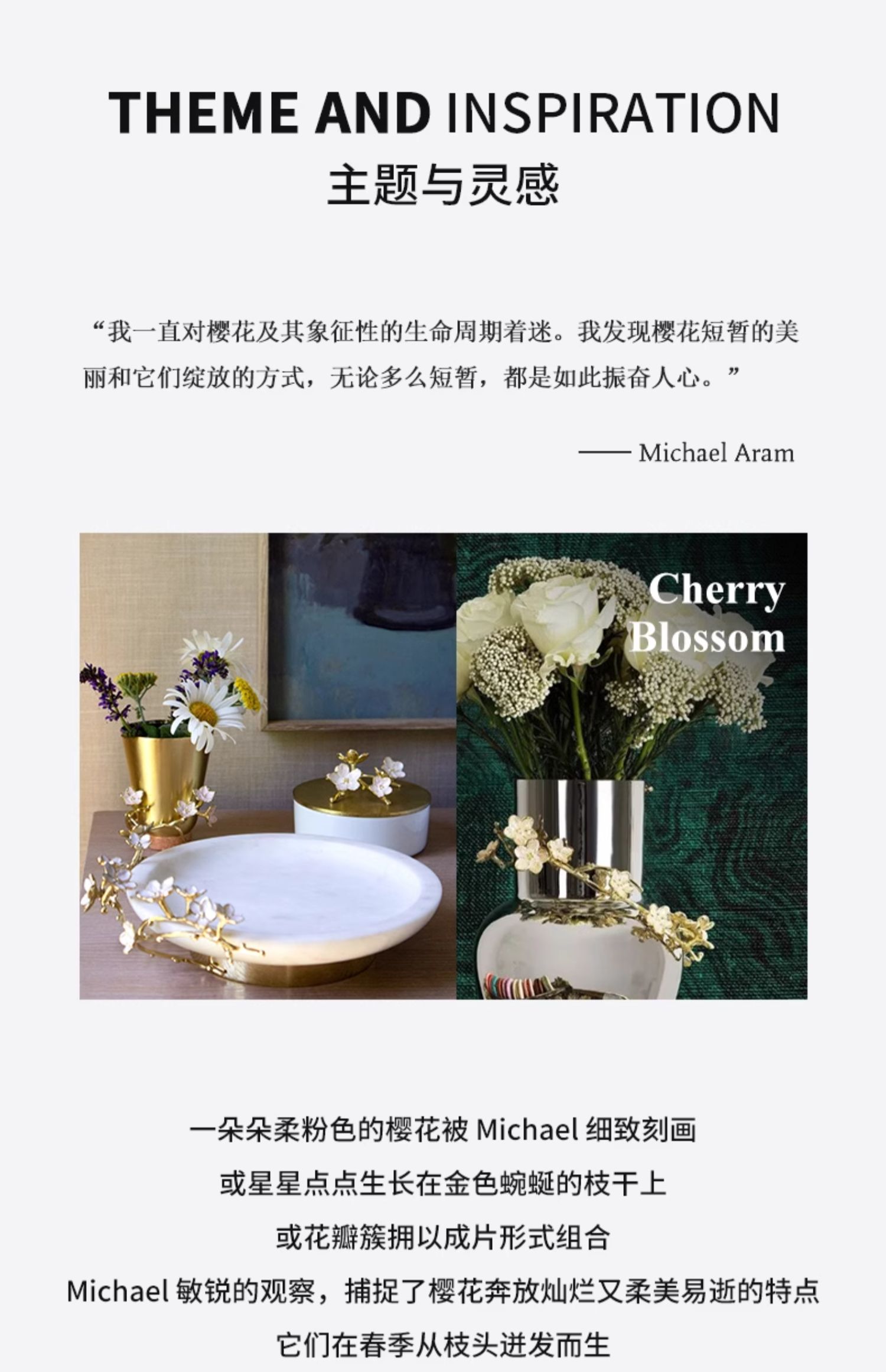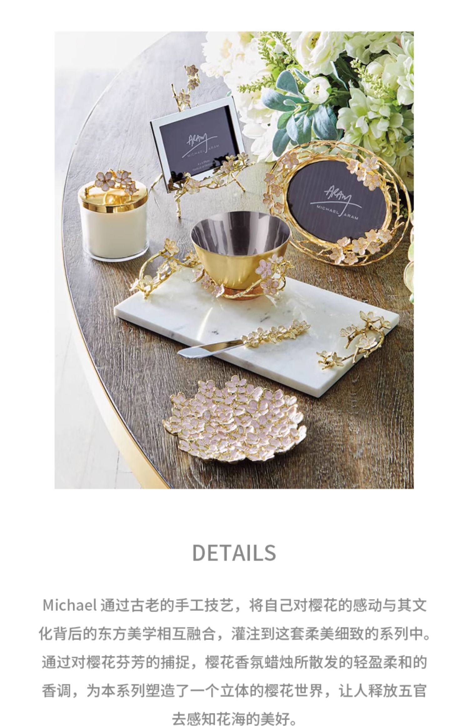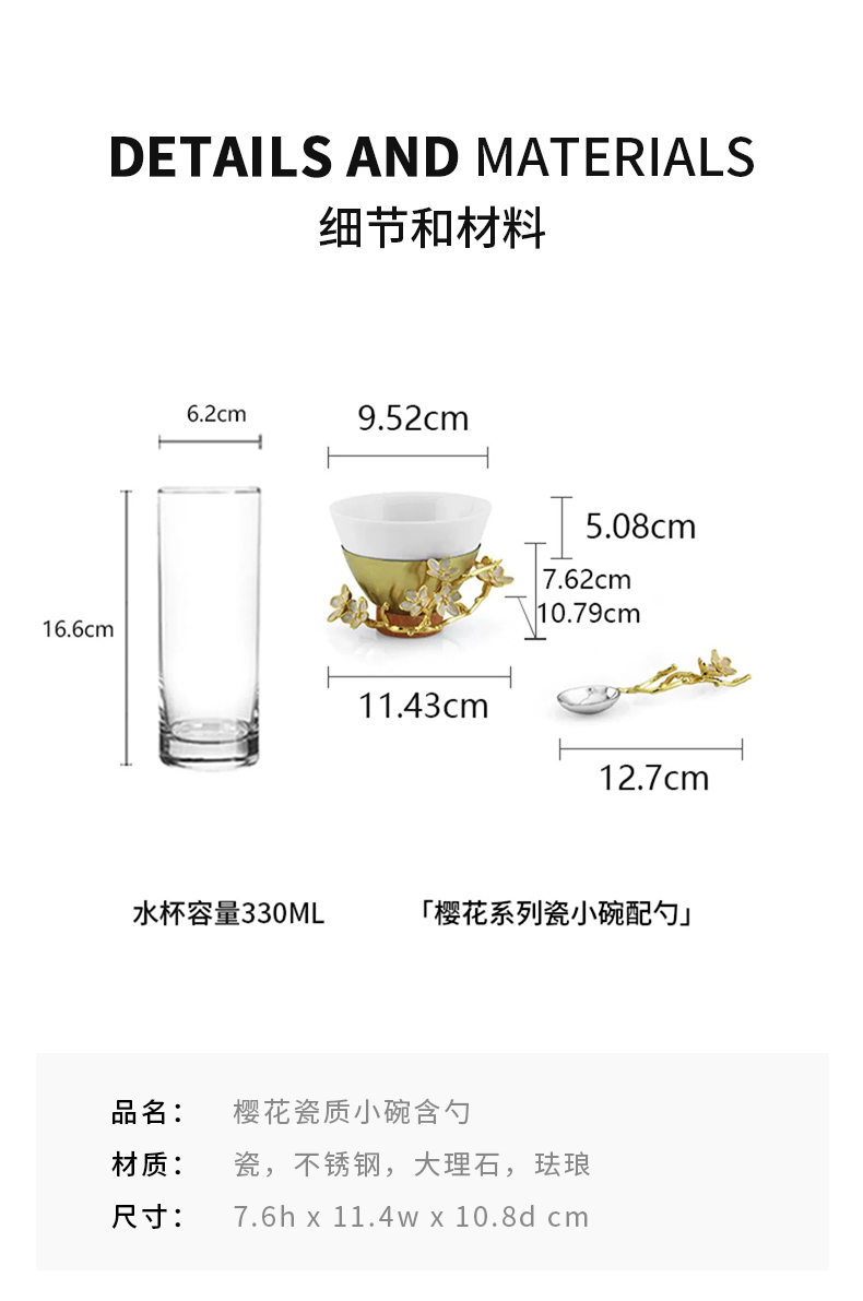 Michael Aram 樱花瓷质小碗含勺 印度手工制作樱花系列陶瓷金属小碗配勺礼物女轻奢风