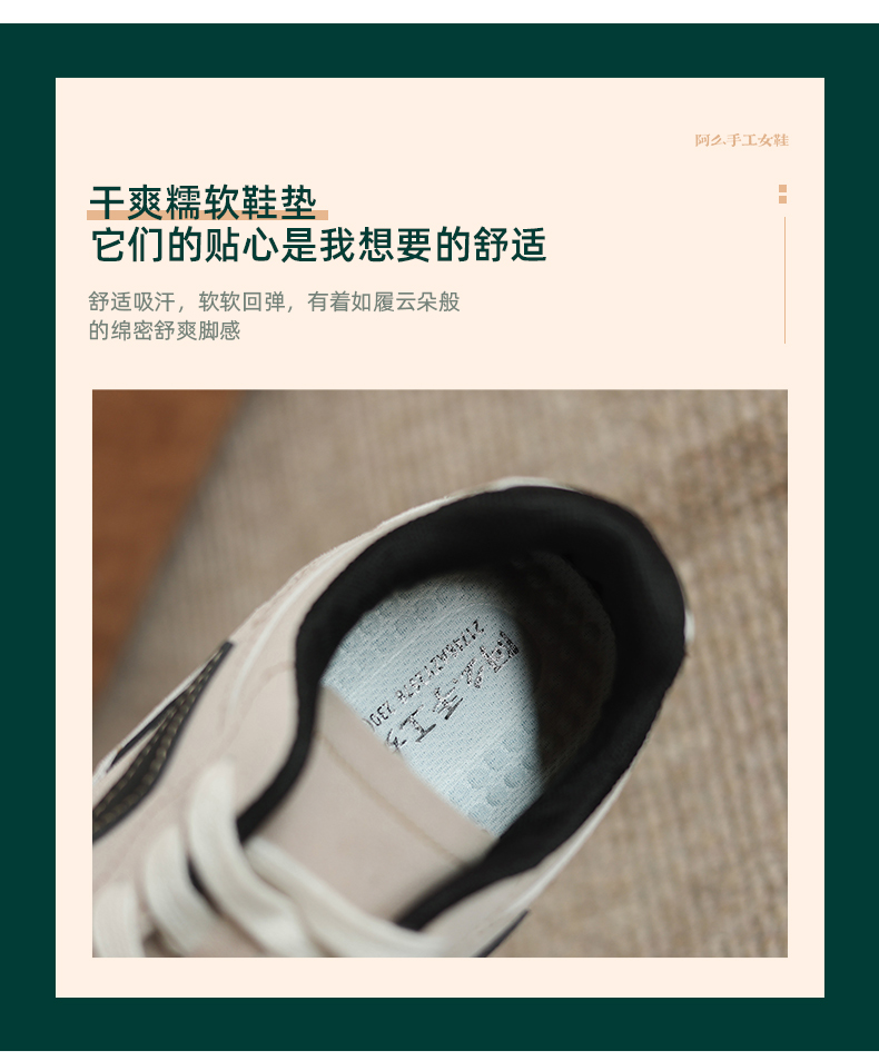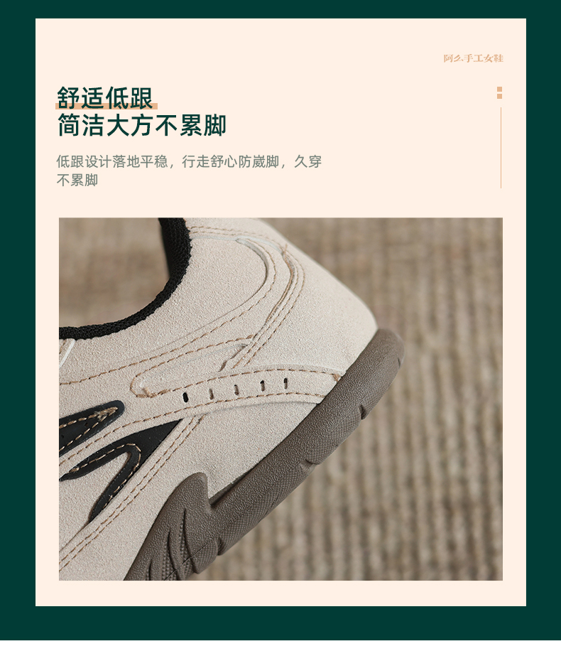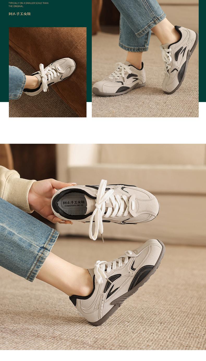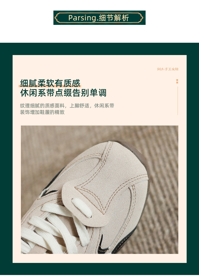 阿么手工女鞋复古德训鞋女款2026新款潮流百搭平底休闲阿甘鞋2CM