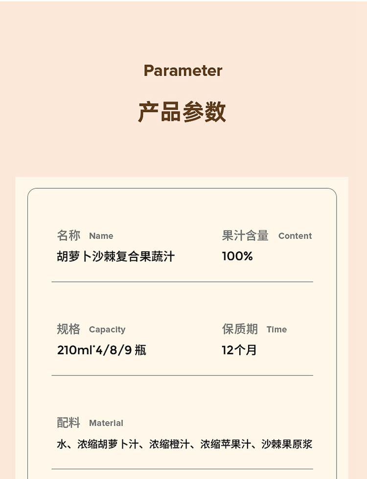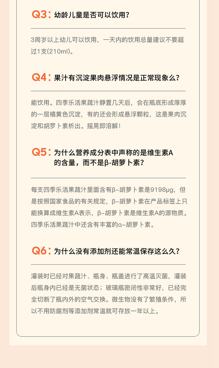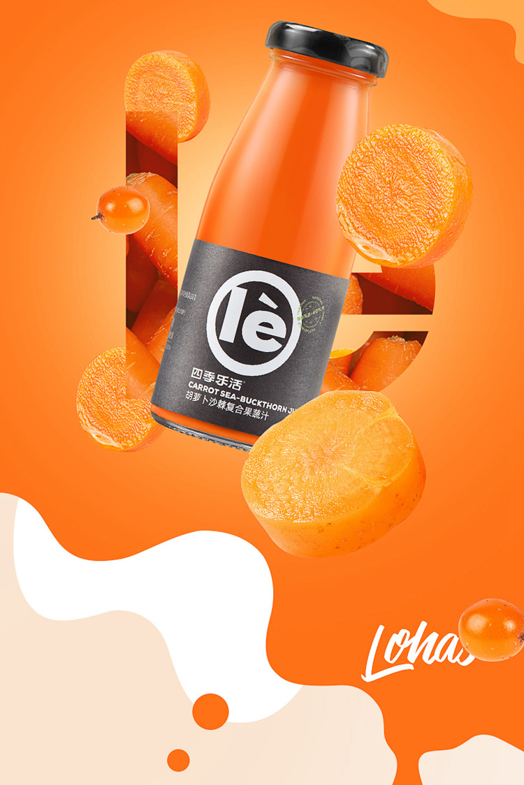 四季乐活胡萝卜沙棘复合果蔬汁 210ml*24瓶【包邮直发】
