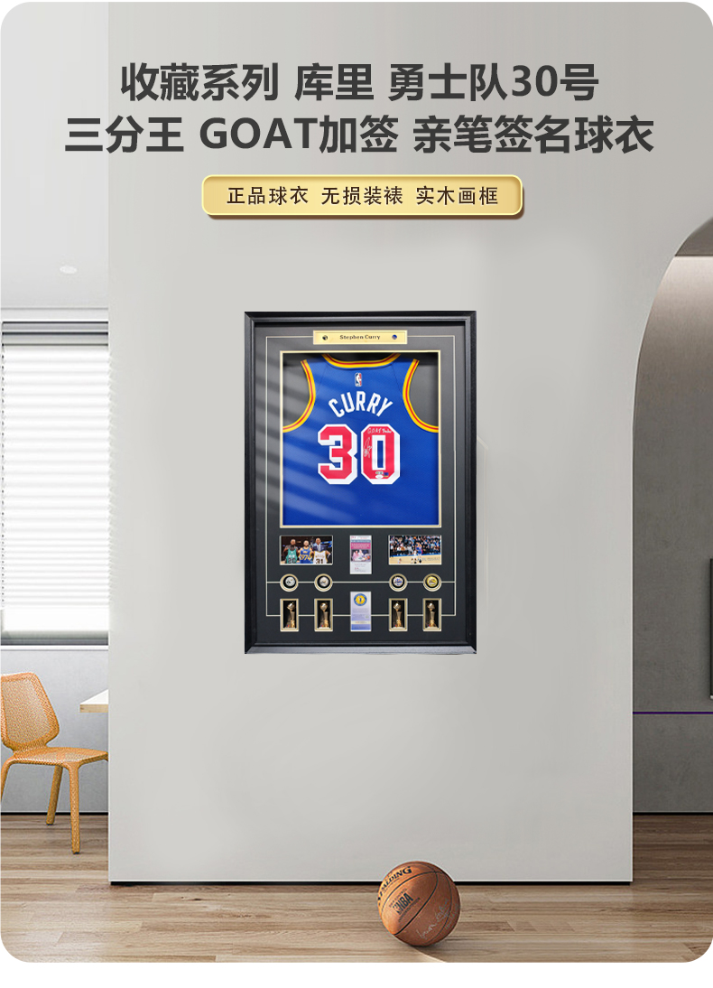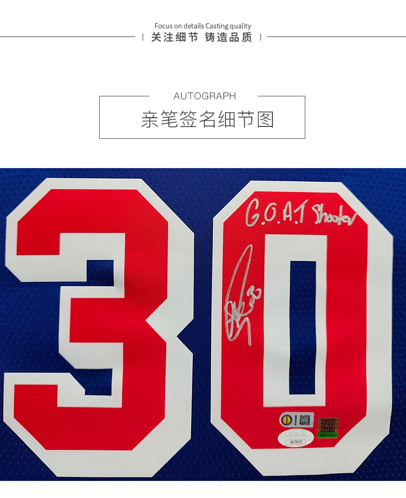 收藏系列 库里 勇士队30号三分王 GOAT 亲笔签名球衣