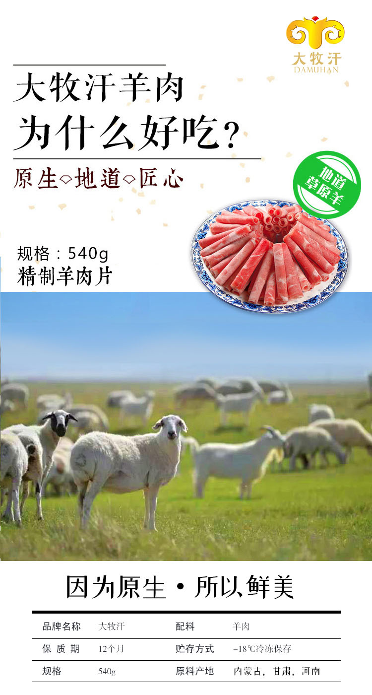 大牧汗国产精制羊肉片 540g/袋
