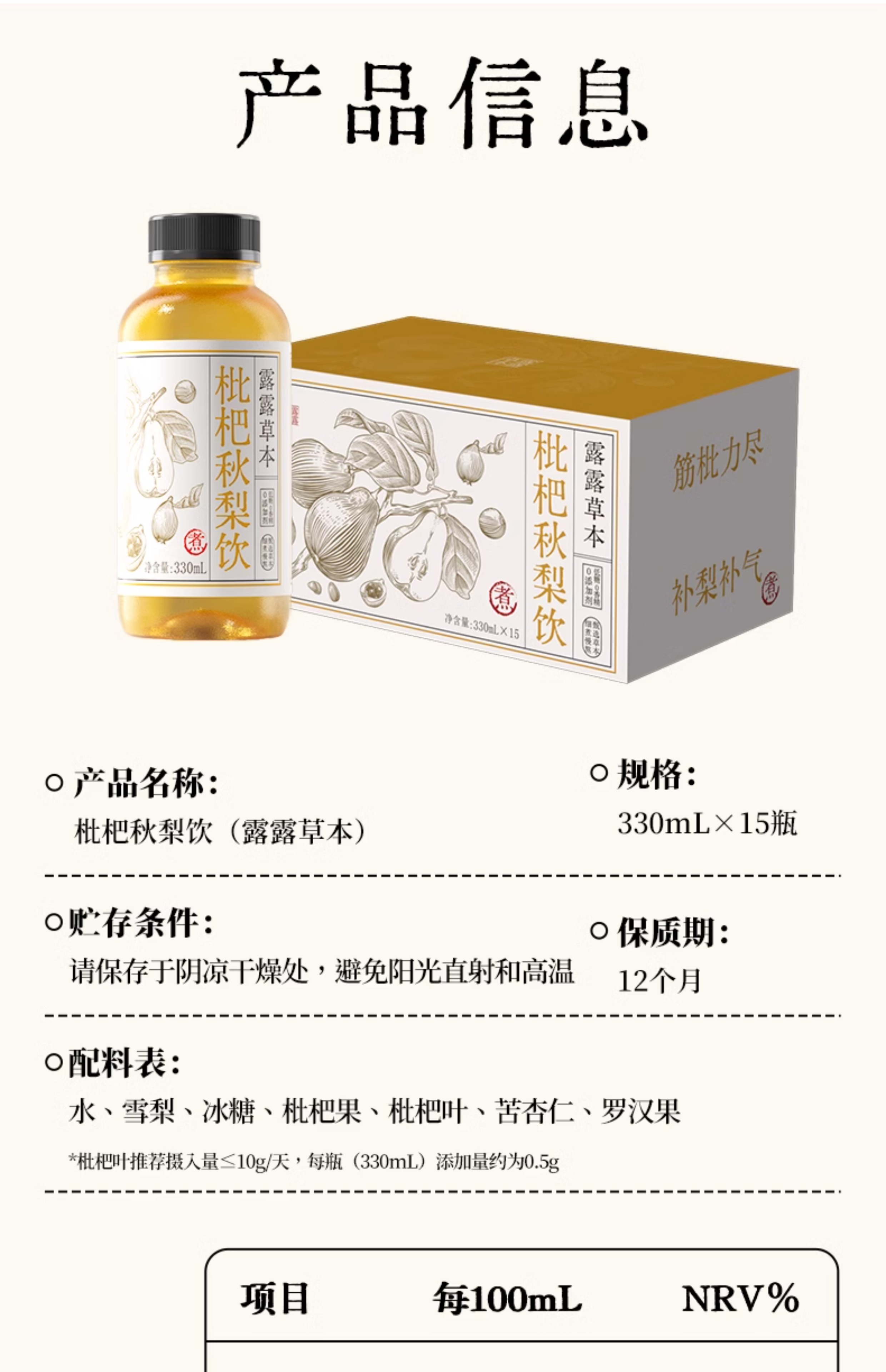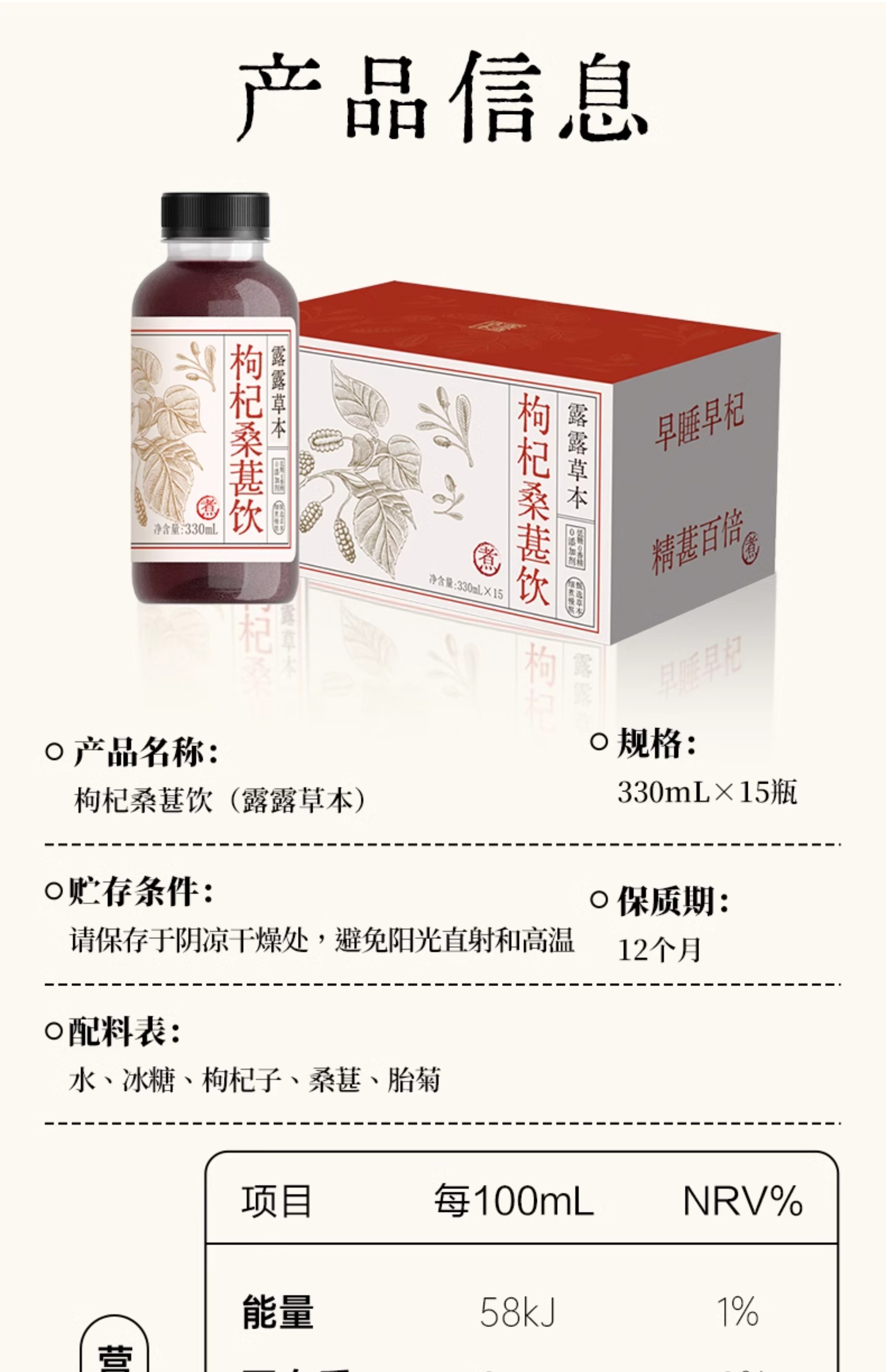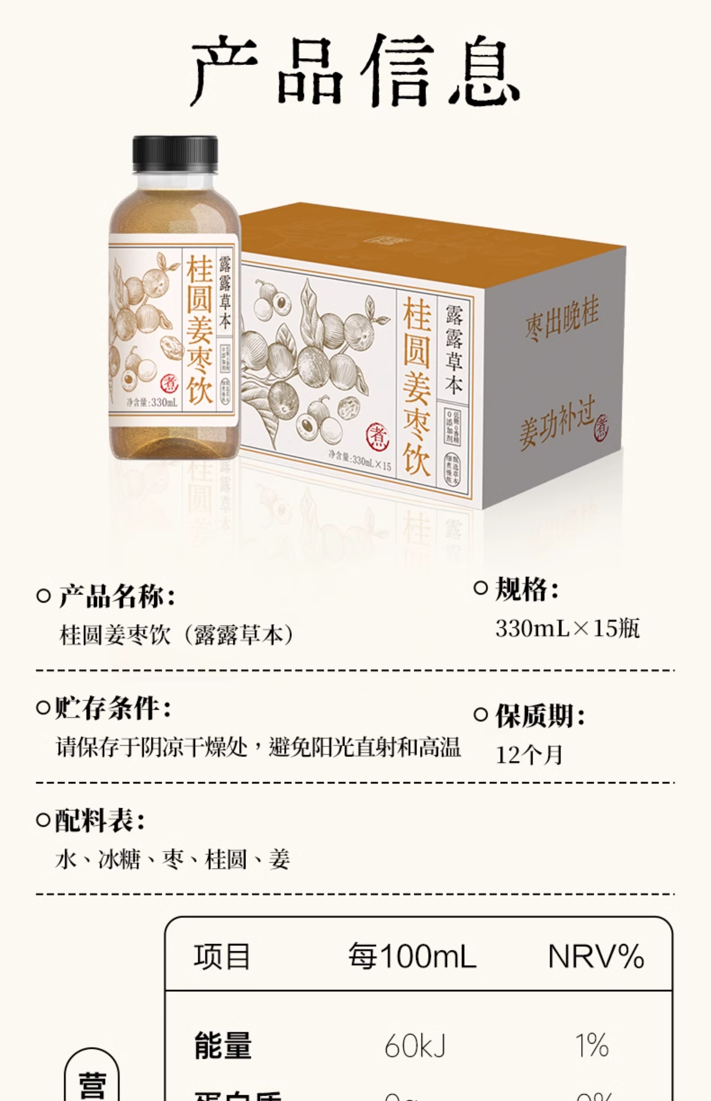 露露草本养生水330mL*15瓶陈皮水桂圆枸杞植物饮料四口味