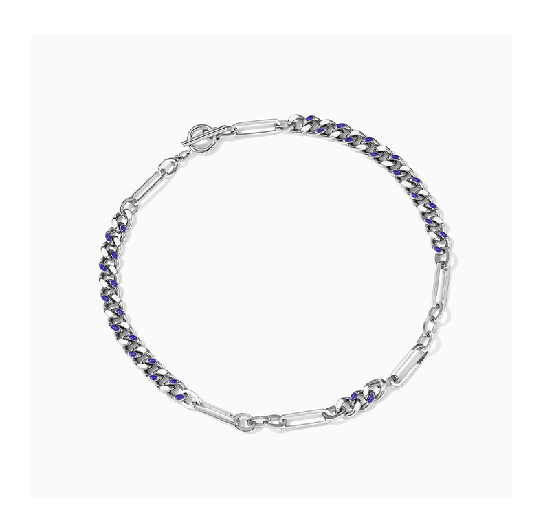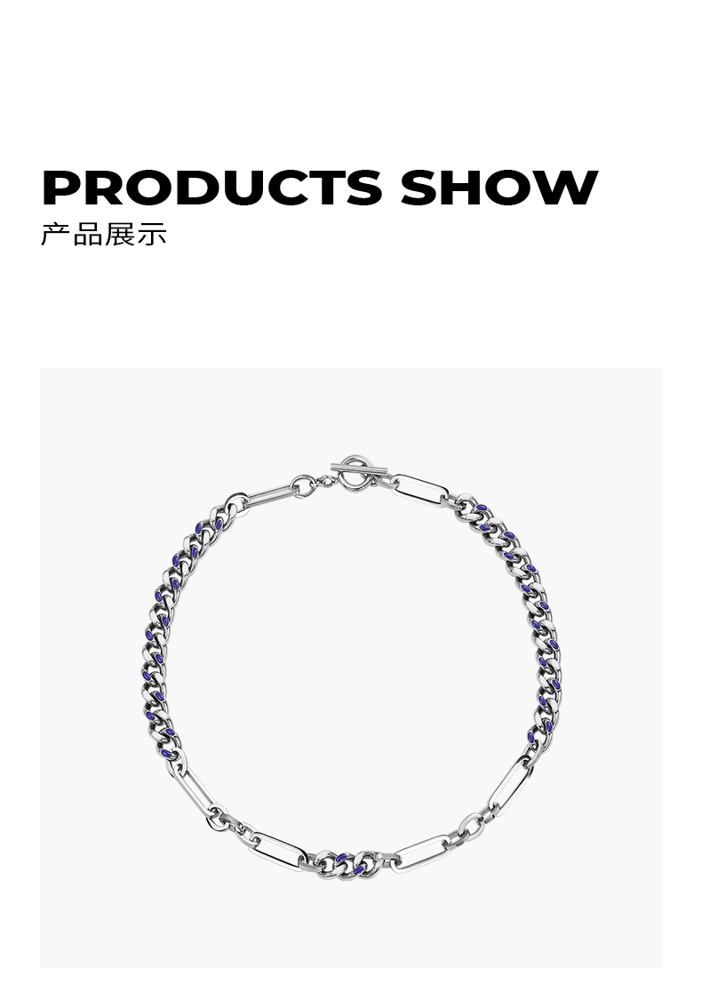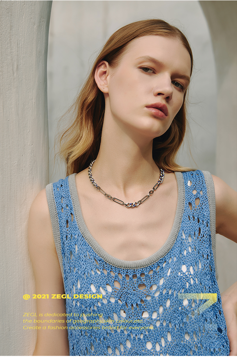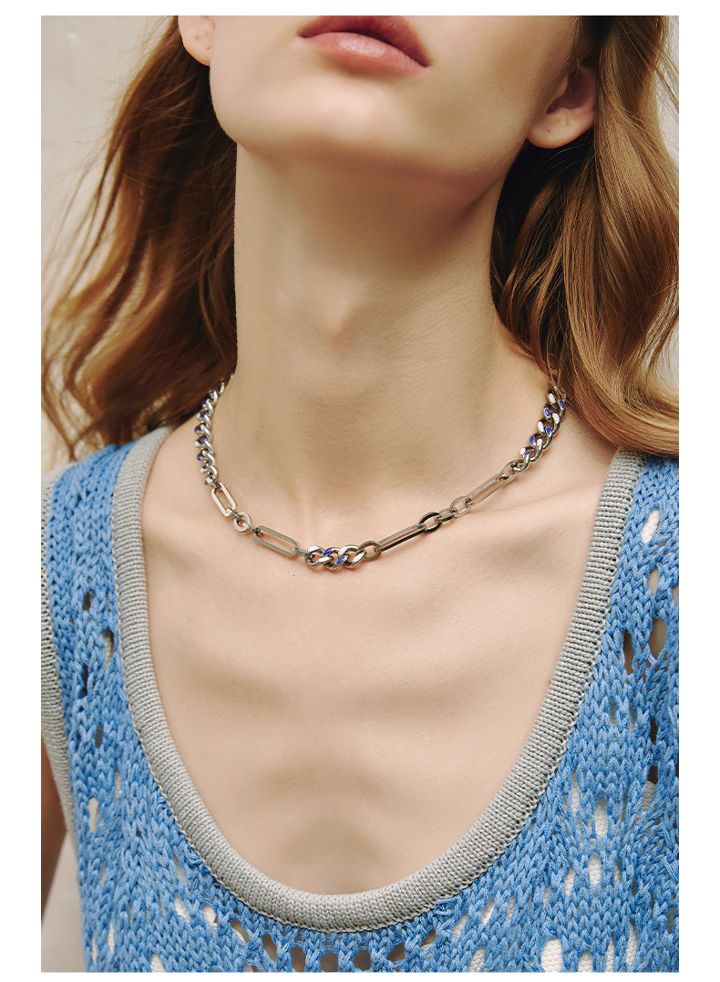 ZEGL蓝白环扣项链女潮ins嘻哈小众设计感冷淡风复古锁骨链配饰品