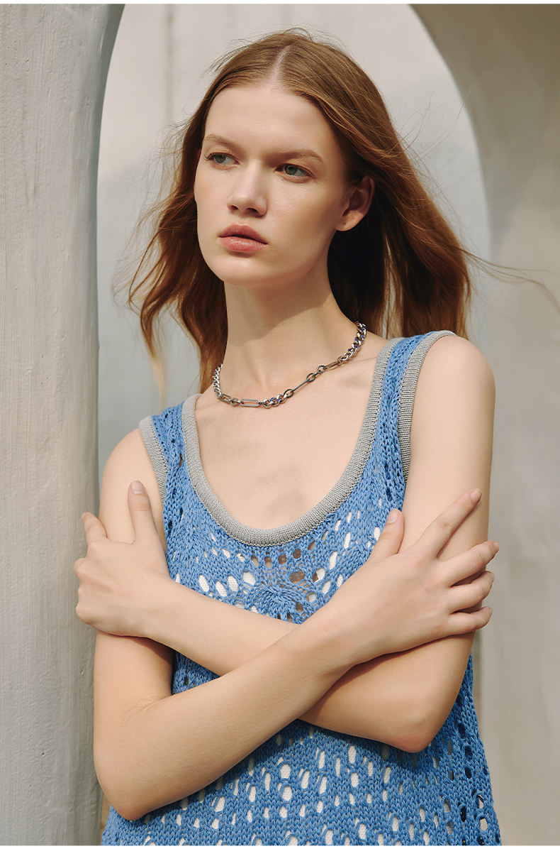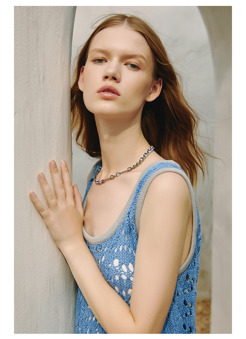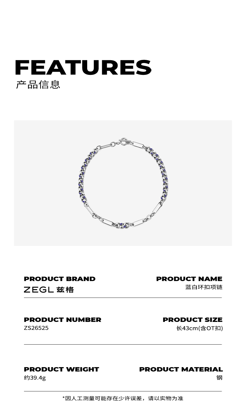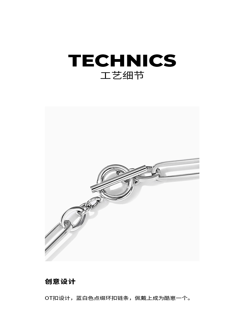 ZEGL蓝白环扣项链女潮ins嘻哈小众设计感冷淡风复古锁骨链配饰品