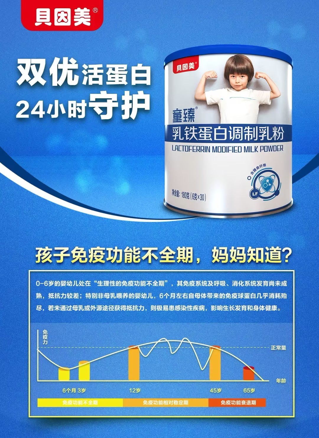 【限时秒杀】贝因美童臻乳铁蛋白调制乳粉180g冲剂(保质期至2026年4月21日)