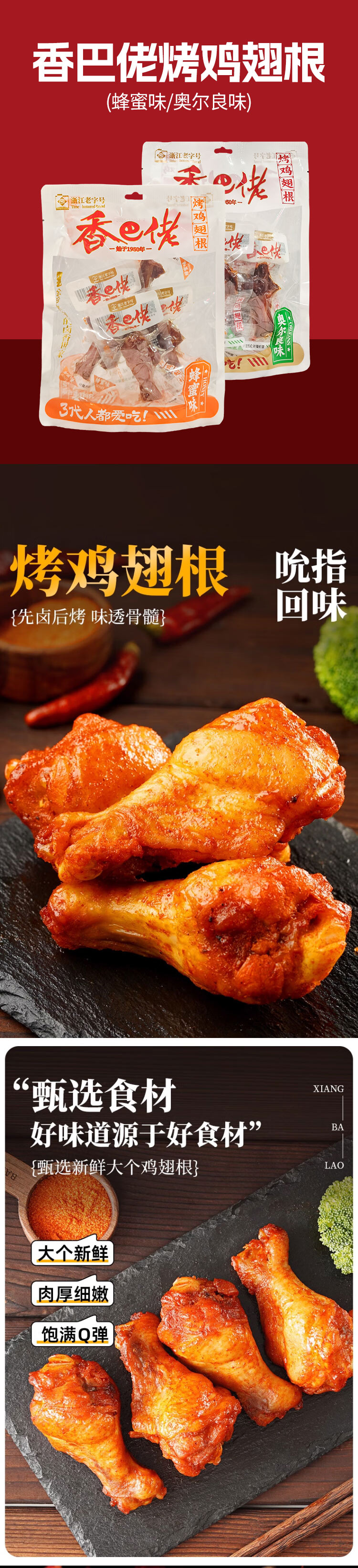 香巴佬蜂蜜味|奥尔良味烤鸡翅根128g