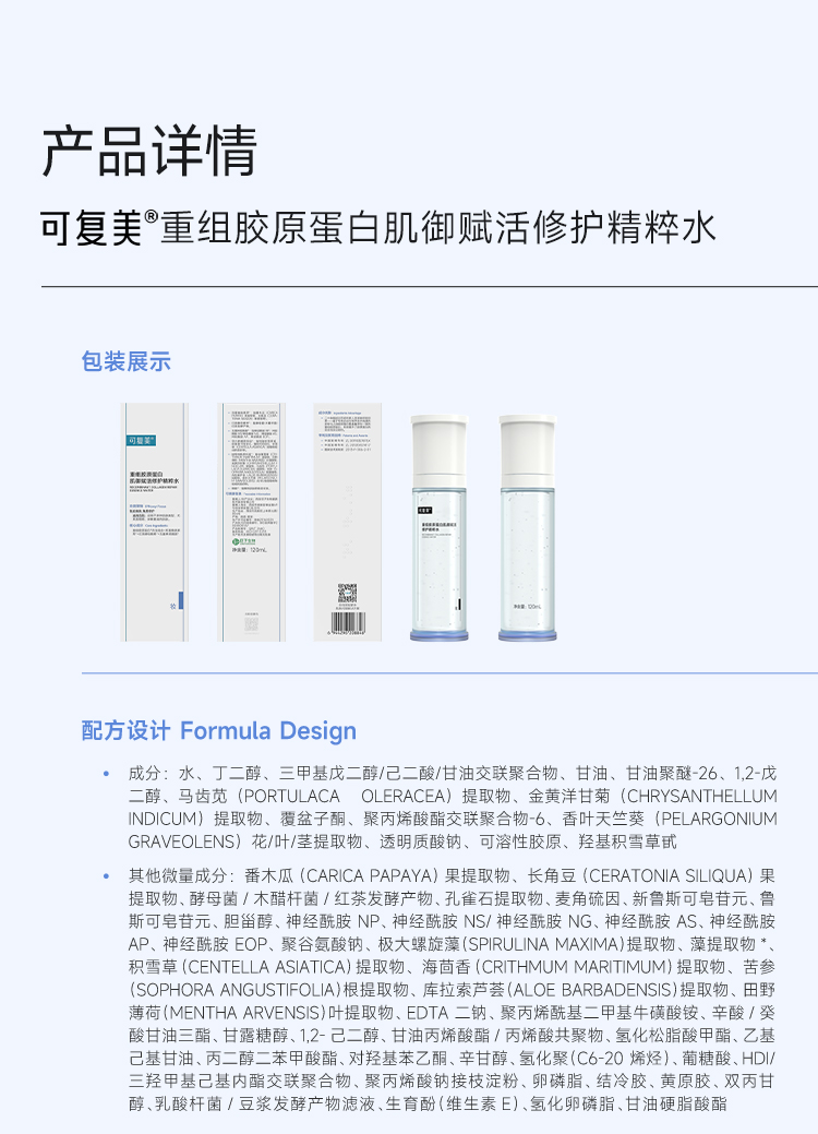 【可复美胶原水】可复美重组胶原蛋白肌御赋活修护精粹水120ml/瓶