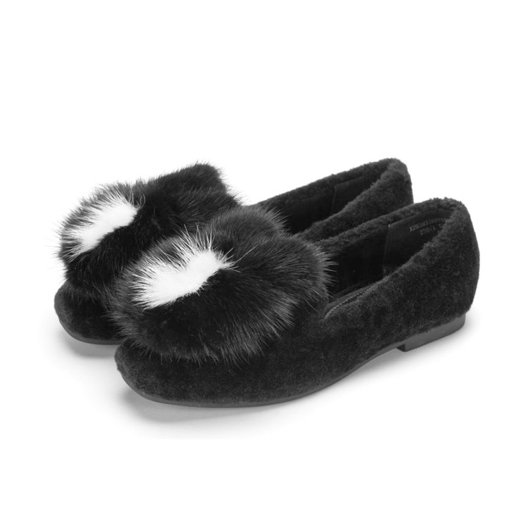 西村名物秋冬新款可爱时尚豆豆鞋毛毛鞋貂毛皮X283M33691