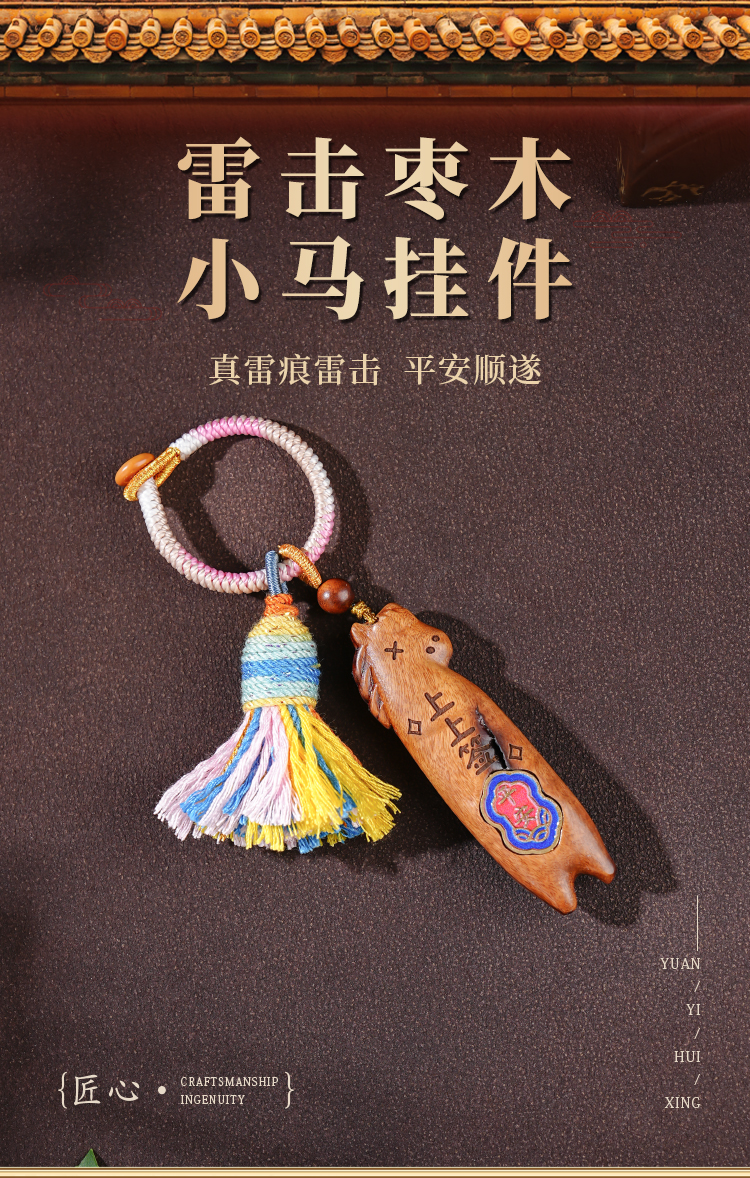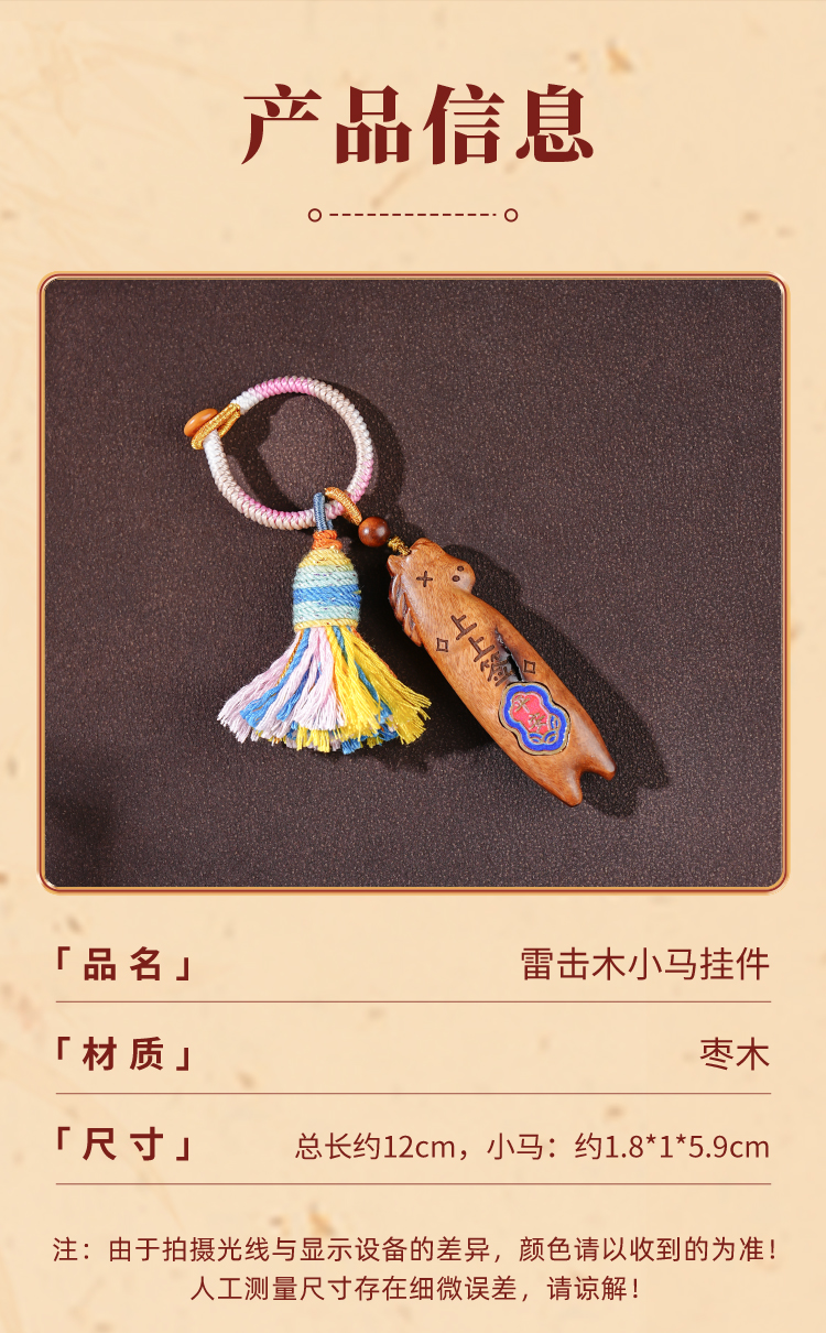 雷击木小马挂件上上签钥匙扣包包挂件装饰吉祥物