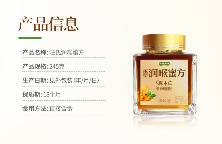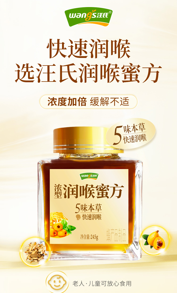 【汪氏】浓型润喉蜜方 5味本草 快速润喉 缓适刀片感 老少皆宜