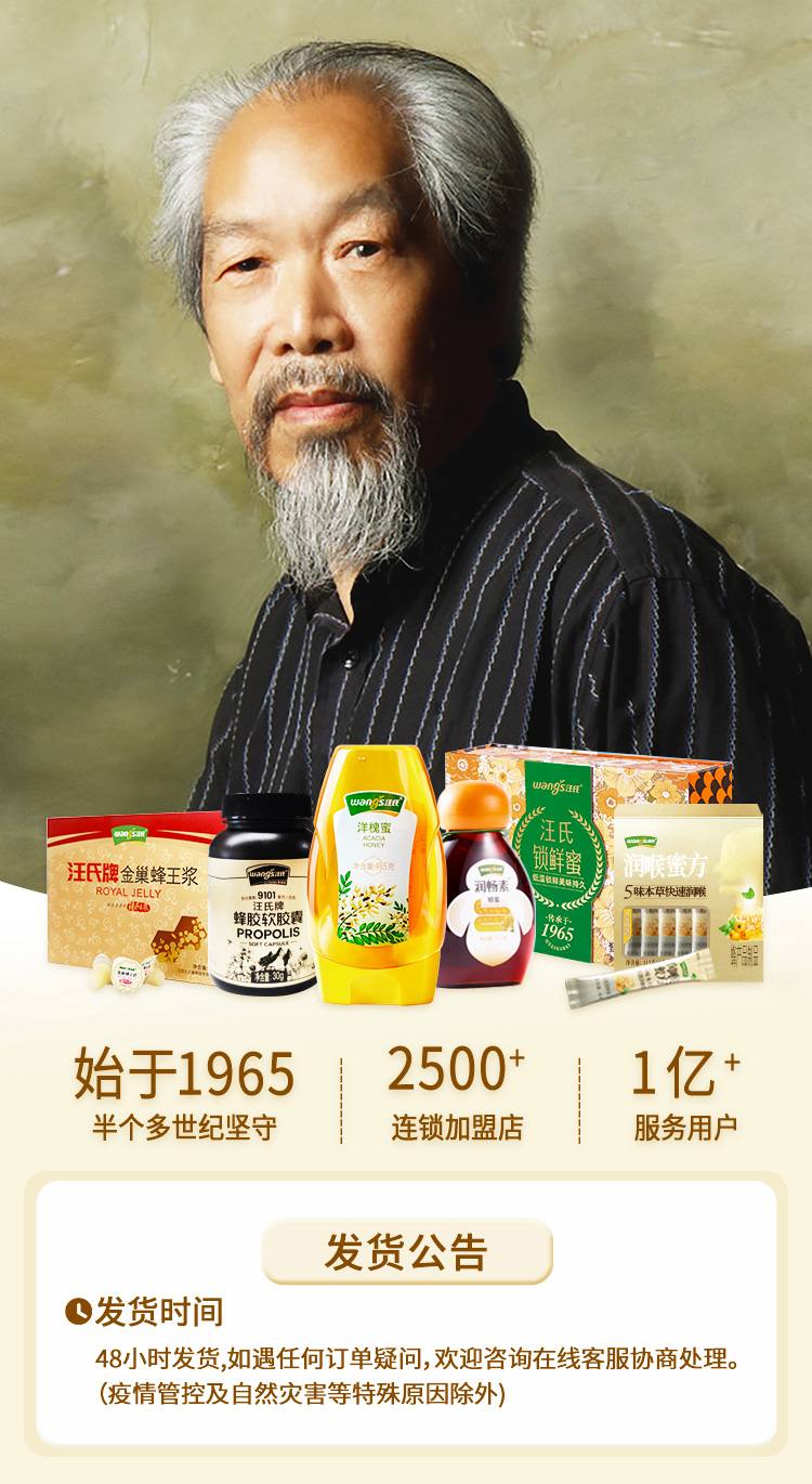 【汪氏】冰纯椴树蜜250g蜂蜜0脂肪无添加结晶蜂蜜官方正品纯蜂蜜