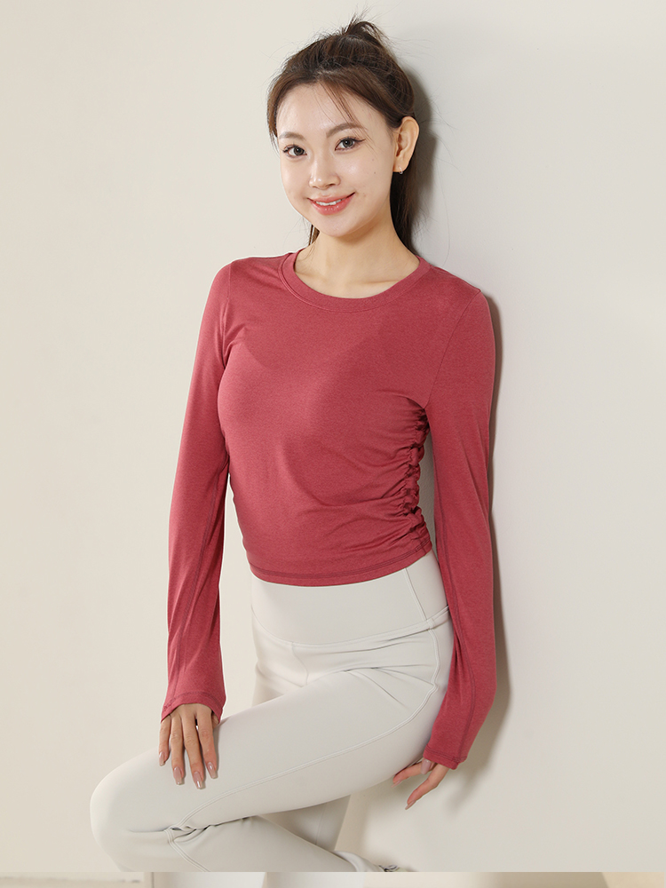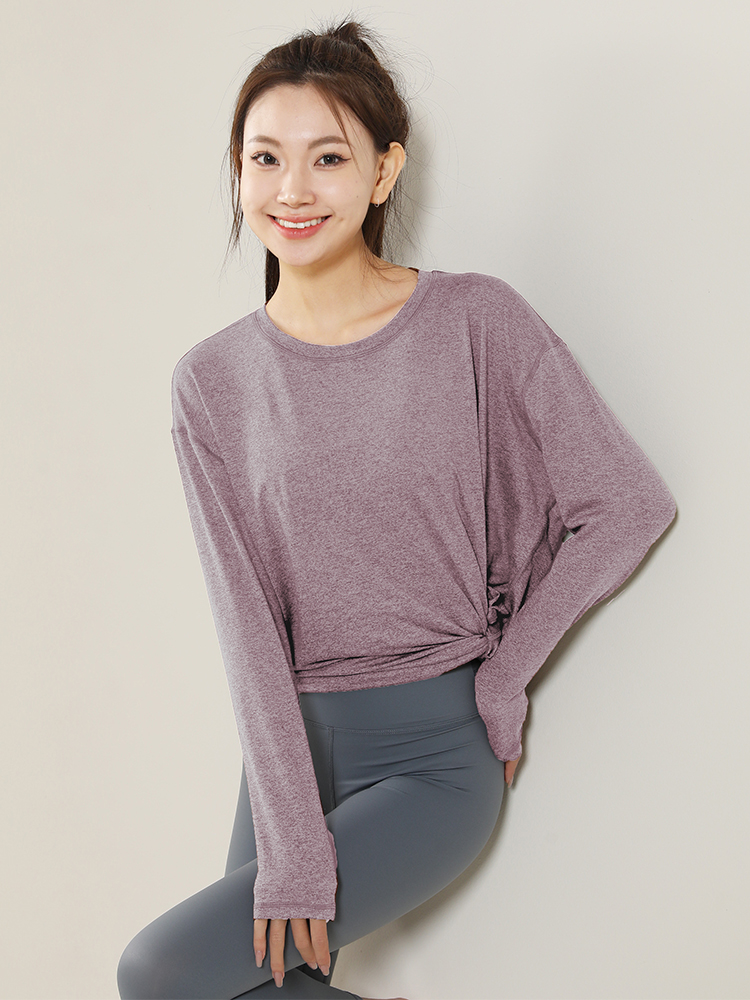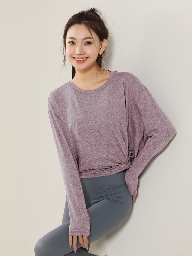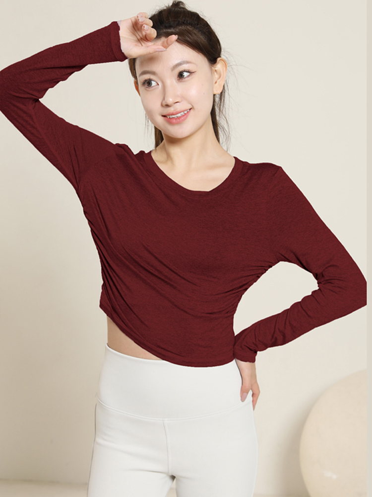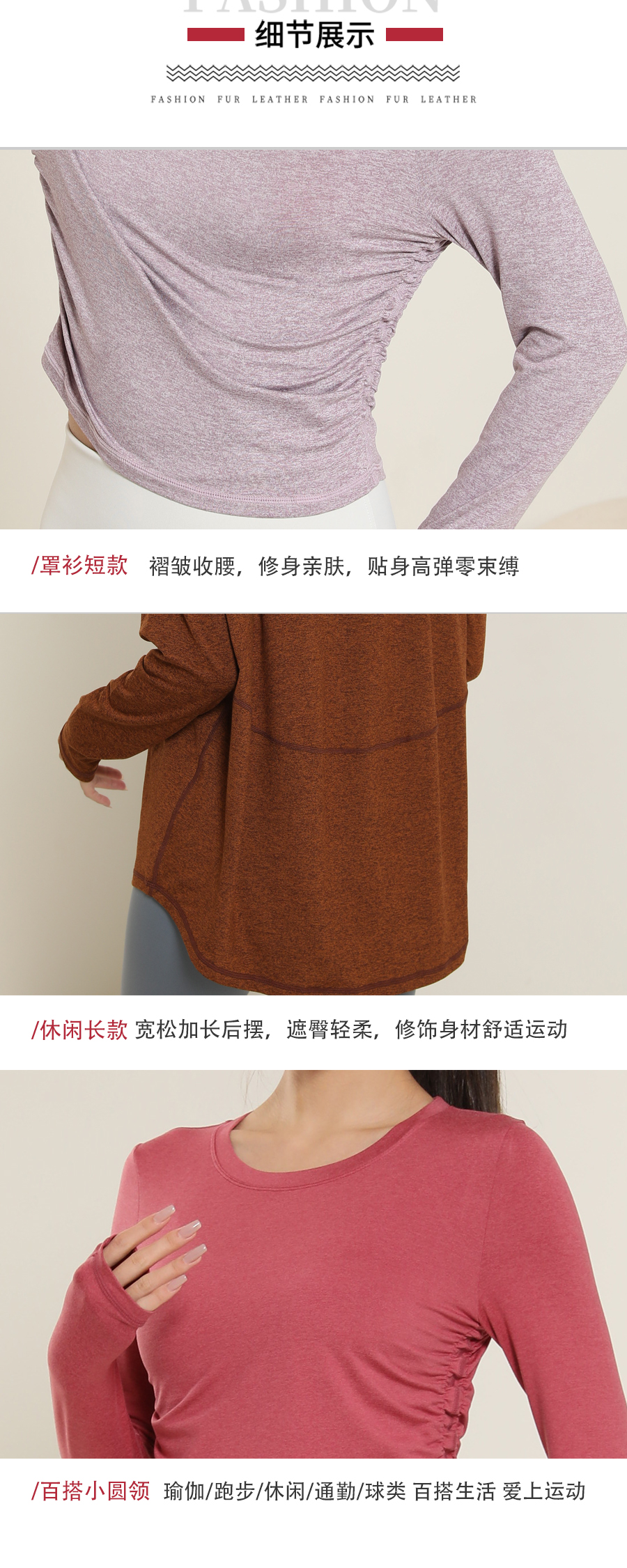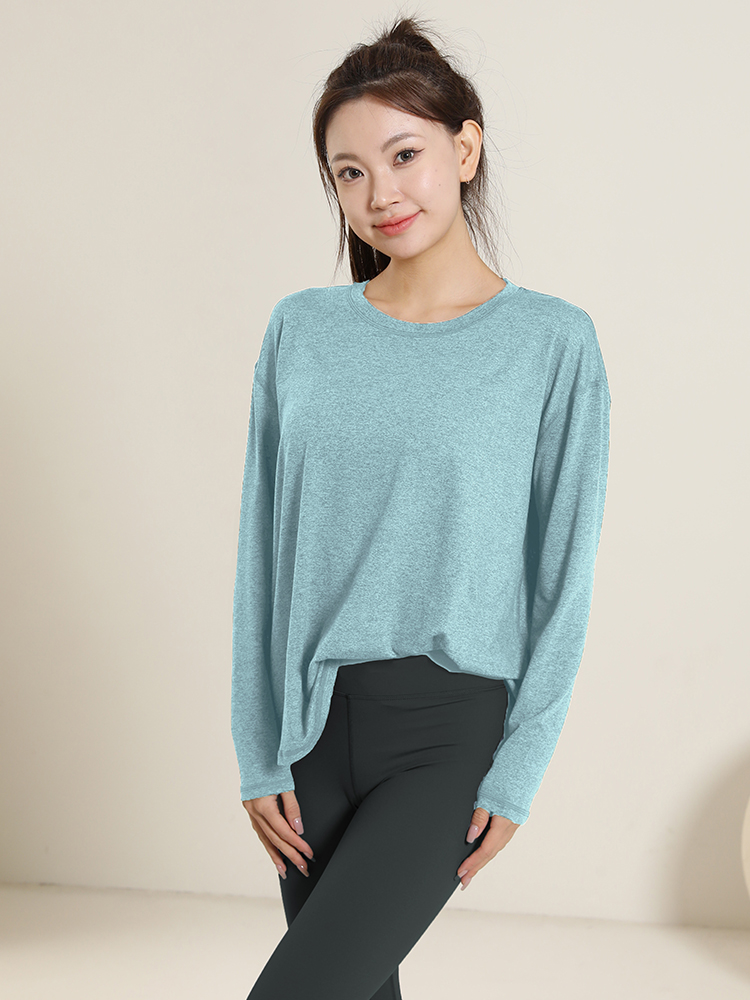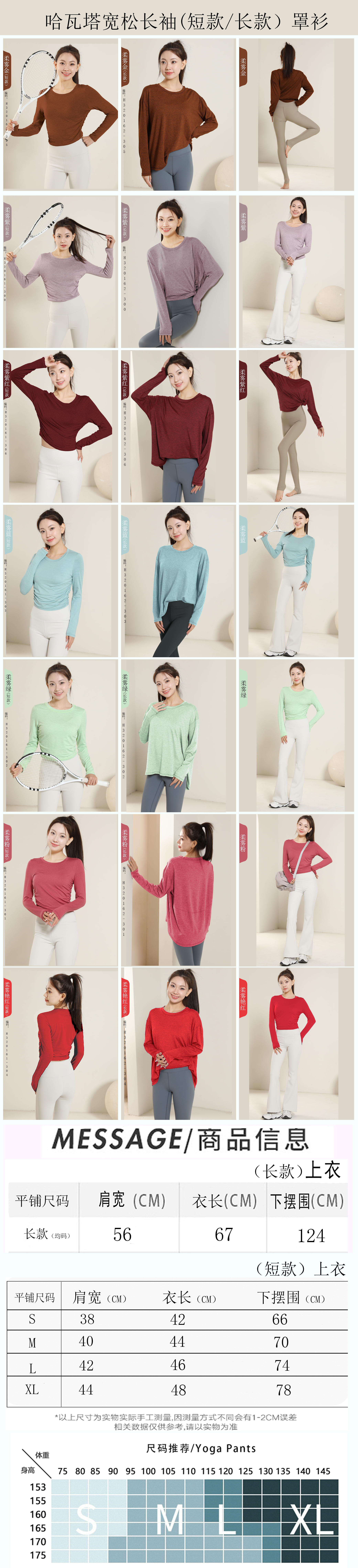 哈瓦塔新款女柔雾瑜伽宽松显瘦长袖罩衫长款运动T恤短款上衣 H320162